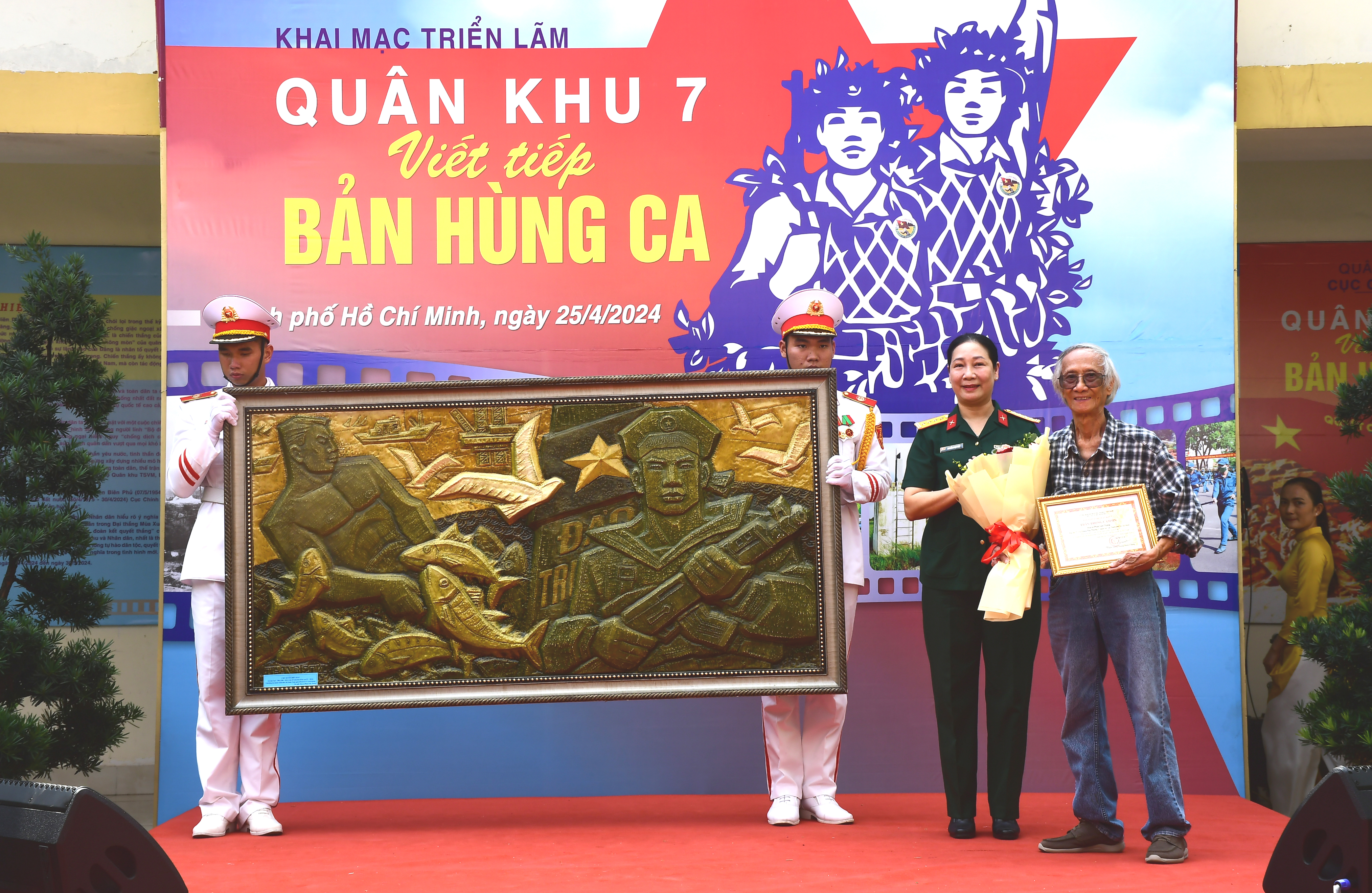 Trong đợt triển lãm, các Anh hùng LLVT Nhân dân, các nhà điêu khắc, họa sĩ trao những hiện vật, kỷ vật, trao tượng Đại tướng Nguyễn Chí Thanh, tác phẩm phù điêu “Tiến về Sài gòn"; "Chủ quyền biển đảo” tặng Bảo tàng Quân khu.