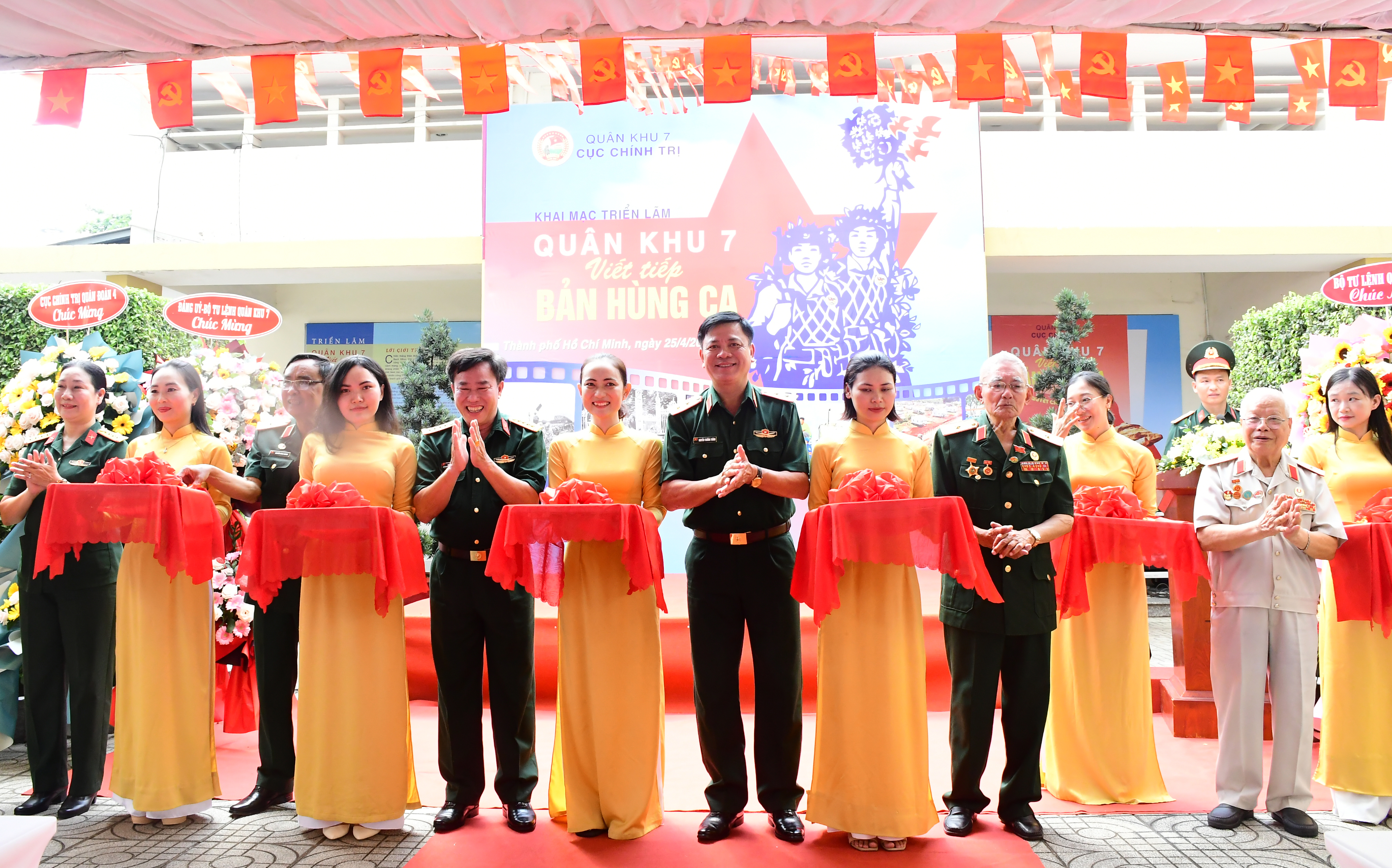 (QK7 Online) - Ngày 25/4, tại Bảo tàng Quân khu 7, Cục Chính trị Quân khu tổ chức khai mạc triển lãm chuyên đề “Quân khu 7 viết tiếp bản hùng ca”. Trung tướng Nguyễn Trường Thắng, Ủy viên Trung ương Đảng, Ủy viên Quân ủy Trung ương, Tư lệnh Quân khu dự, cắt băng khai mạc triển lãm.