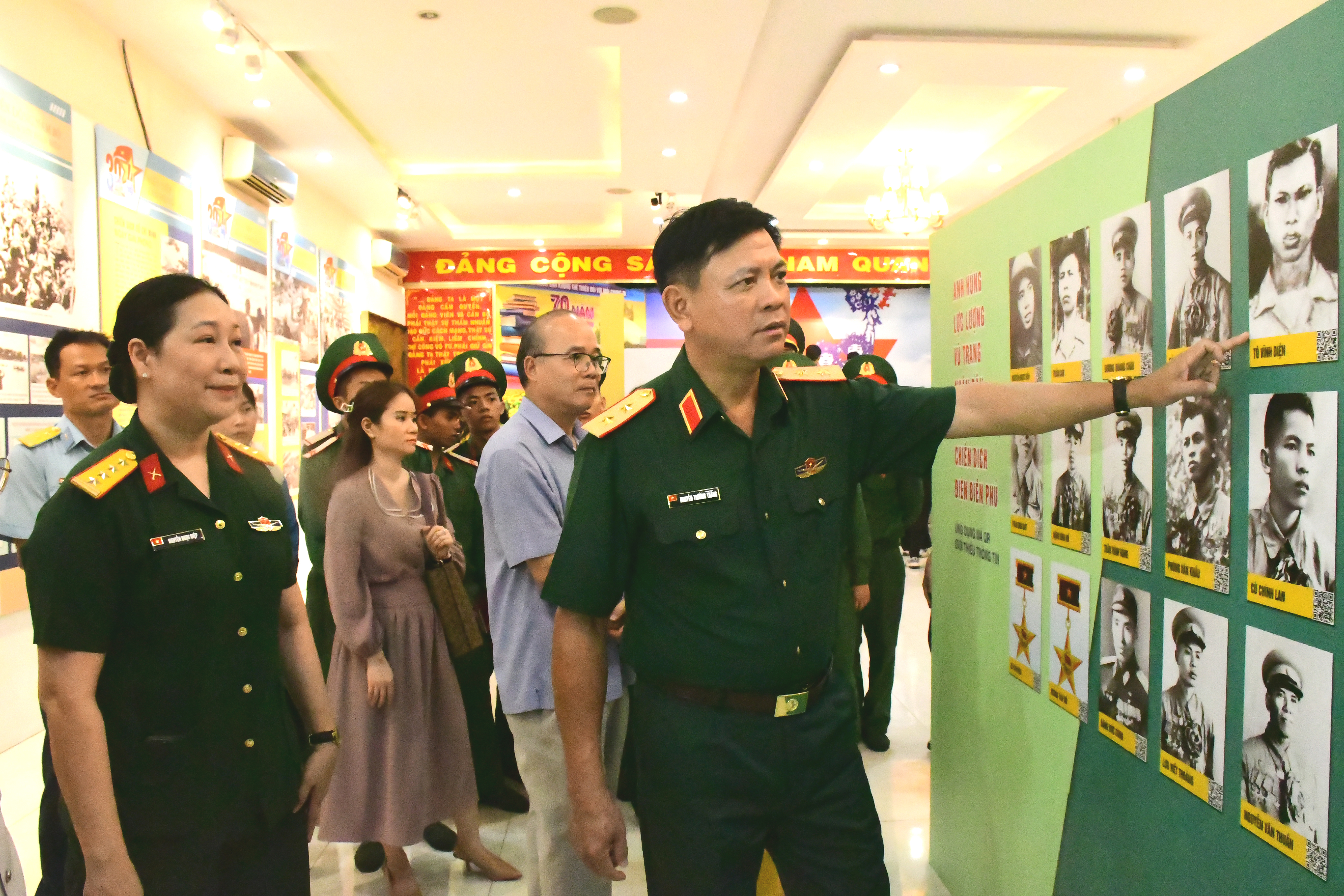 Cán bộ, chiến sĩ và khách tham quan chú trọng tìm hiểu phần triển lãm “Miền Đông Nam Bộ chia lửa với Điện Biên”. Ở đây khắc họa lại khung cảnh trong chiến cuộc Đông - Xuân 1953-1954 quân và dân miền Đông Nam Bộ mở hơn 2.000 trận đánh lớn nhỏ kết hợp chiến tranh du kích nhằm tiêu hao sinh lực địch, giải phóng đất đai, làm phân tán lực lượng quân cơ động của địch, ngăn không cho quân Pháp đưa lực lượng ra ứng cứu tại Điện Biên Phủ.
