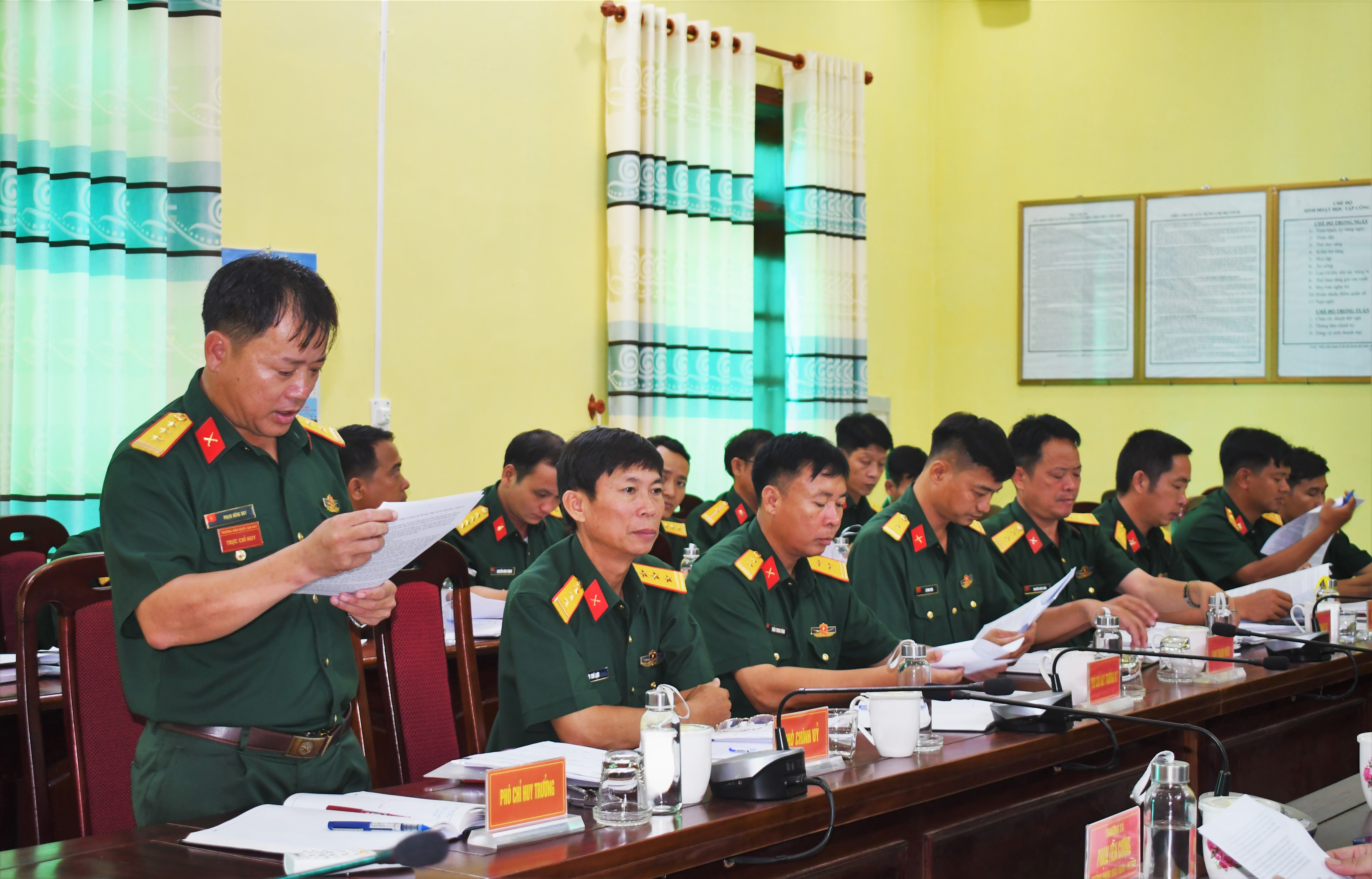 Phó Chỉ huy trưởng Trường bắn báo cáo kết quả huấn luyện CSM và huấn luyện giai đoạn 1 năm 2023.