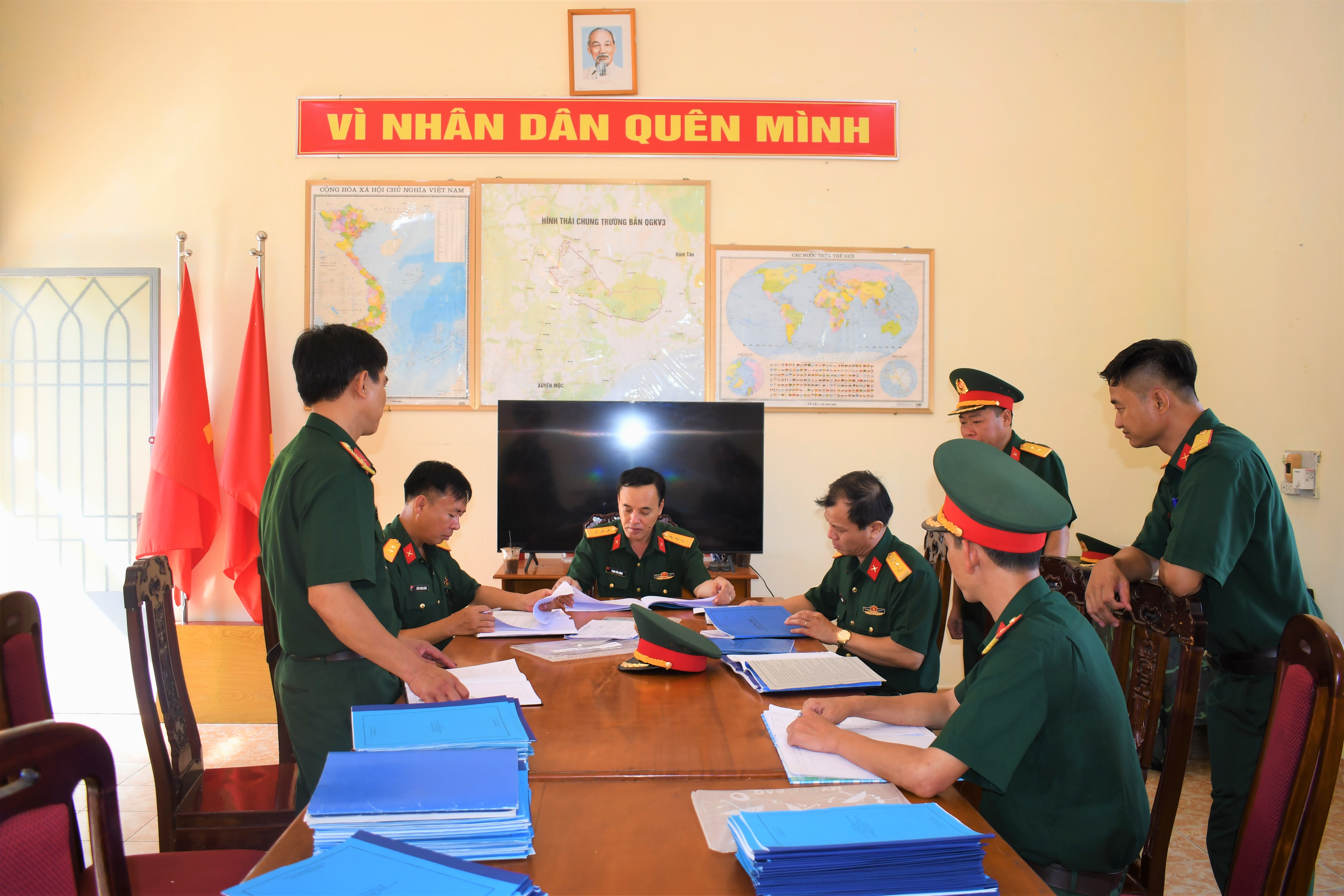 Thành viên đoàn công tác kiểm tra hệ thống sổ sách huấn luyện CSM.