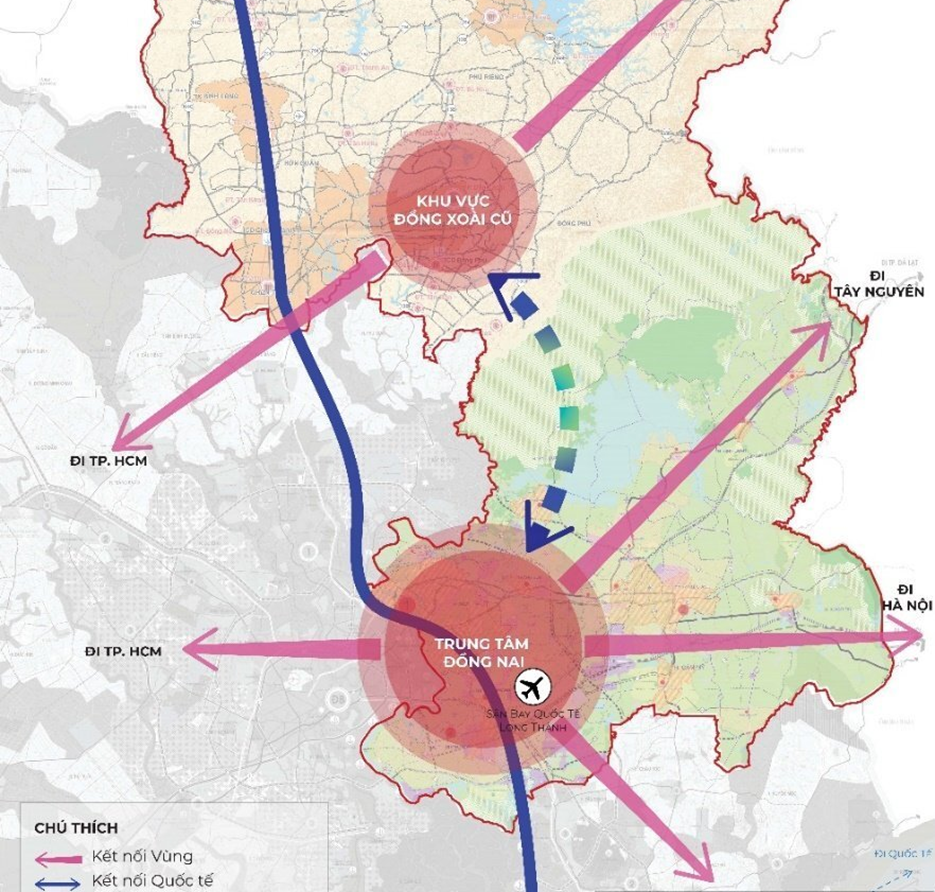 Trong tái cấu trúc vùng Đông Nam Bộ (TP.HCM siêu đô thị, Đồng Nai mở rộng, Tây Ninh mở rộng), Đồng Nai đóng vai trò "cửa ngõ" logistics quốc tế với sân bay Long Thành và hệ thống cửa khẩu biên giới giáp Campuchia.