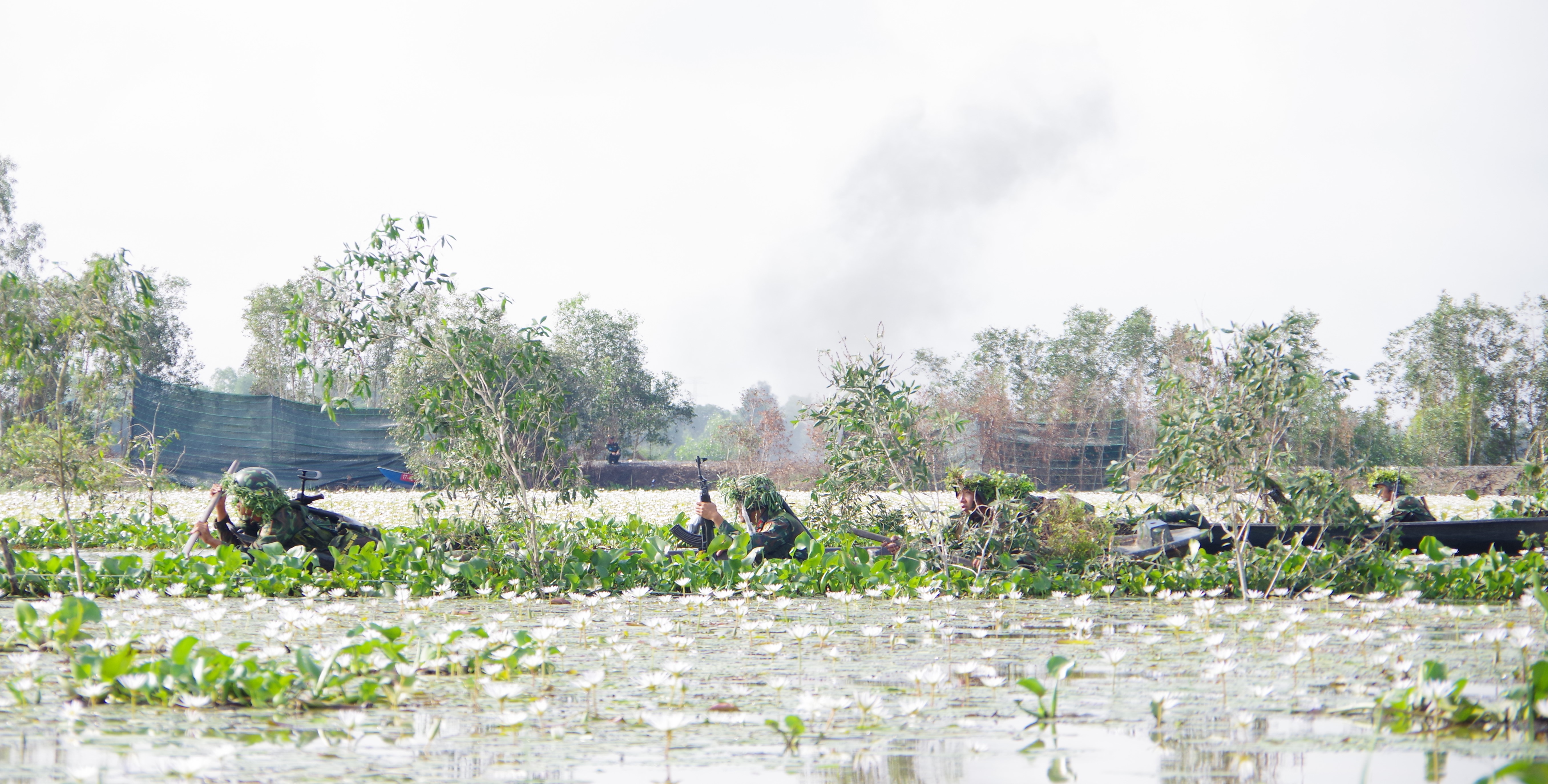 Huấn luyện trên địa hình nước ngập sâu đến thắt lưng sẽ khó khăn hơn so với luyện tập trên thao trường cố định. Tuy nhiên, đó là điều kiện cần thiết để bộ đội làm quen với mọi địa hình chiến đấu, rèn tinh thần khắc phục khó khăn, sẵn sàng nhận và hoàn thành tốt nhiệm vụ được giao trong mọi tình huống. Không chút ngần ngại, vượt nước, lội bùn, từng CBCS nai nịt gọn gàng, luyện tập thuần thục từng thao tác kỹ, chiến thuật, phối hợp chặt chẽ trong hiệp đồng tác chiến... CBCS vận dụng tốt các tư thế, động tác kỹ, chiến thuật, sử dụng thành thạo các loại vũ khí có trong biên chế và phát huy cách đánh truyền thống, bảo đảm tác chiến thắng lợi.