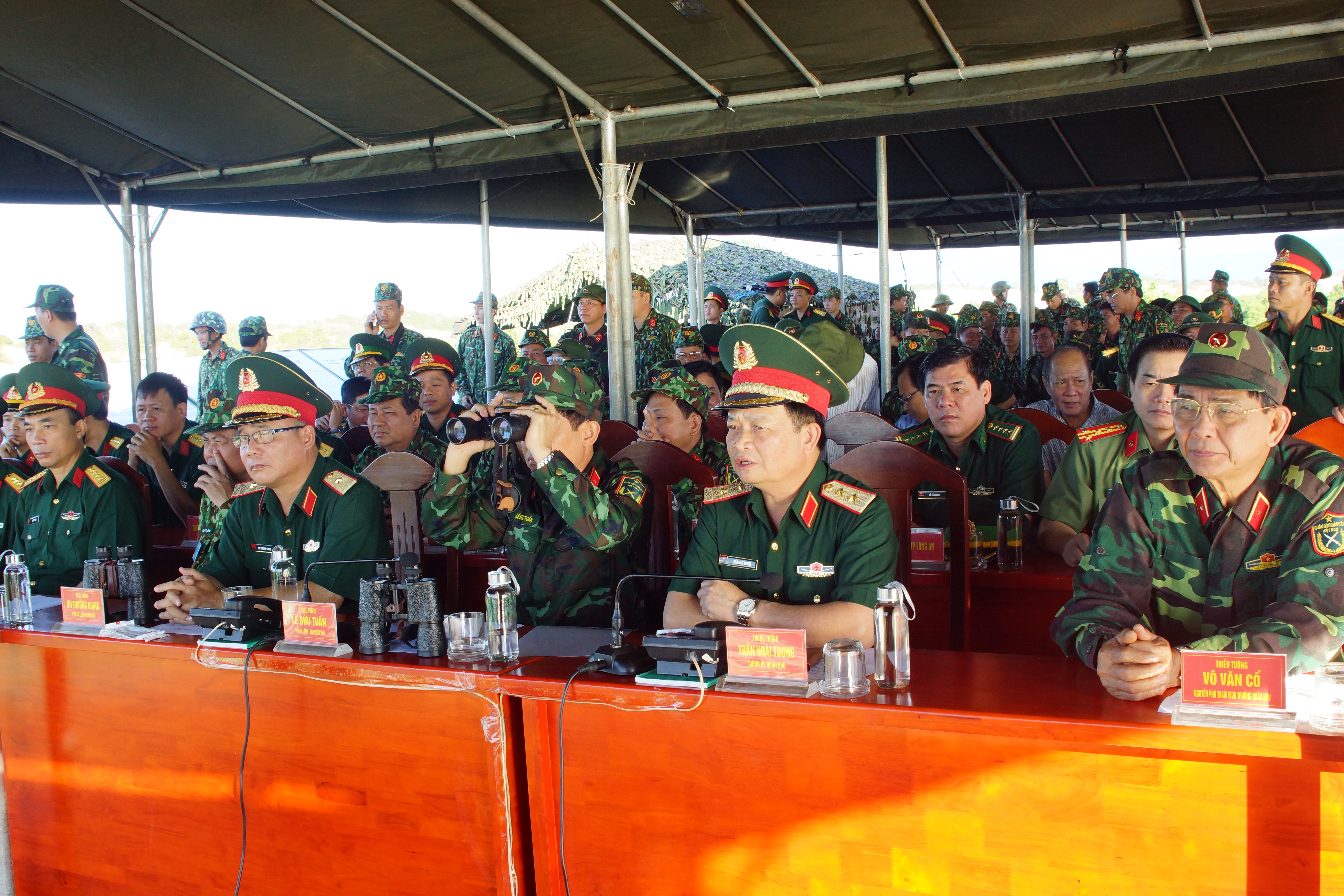 Theo dõi, chỉ đạo diễn tập bắn đạn thật có Trung tướng Trần Hoài Trung, Bí thư Đảng ủy, Chính ủy Quân khu 7; Thiếu tướng Lê Bửu Tuấn, Phó Tư lệnh – Tham mưu trưởng Quân khu 7; Thiếu tướng Du Trường Giang, Phó Tư lệnh Quân khu 7; Đại diện cơ quan Bộ Quốc phòng; Bộ Tư lệnh Bộ đội Biên phòng, Bộ Tư lệnh vùng 2 Hải quân, các học viện nhà trường, các cơ quan Quân khu 7 và các tỉnh, thành phố trên địa bàn.