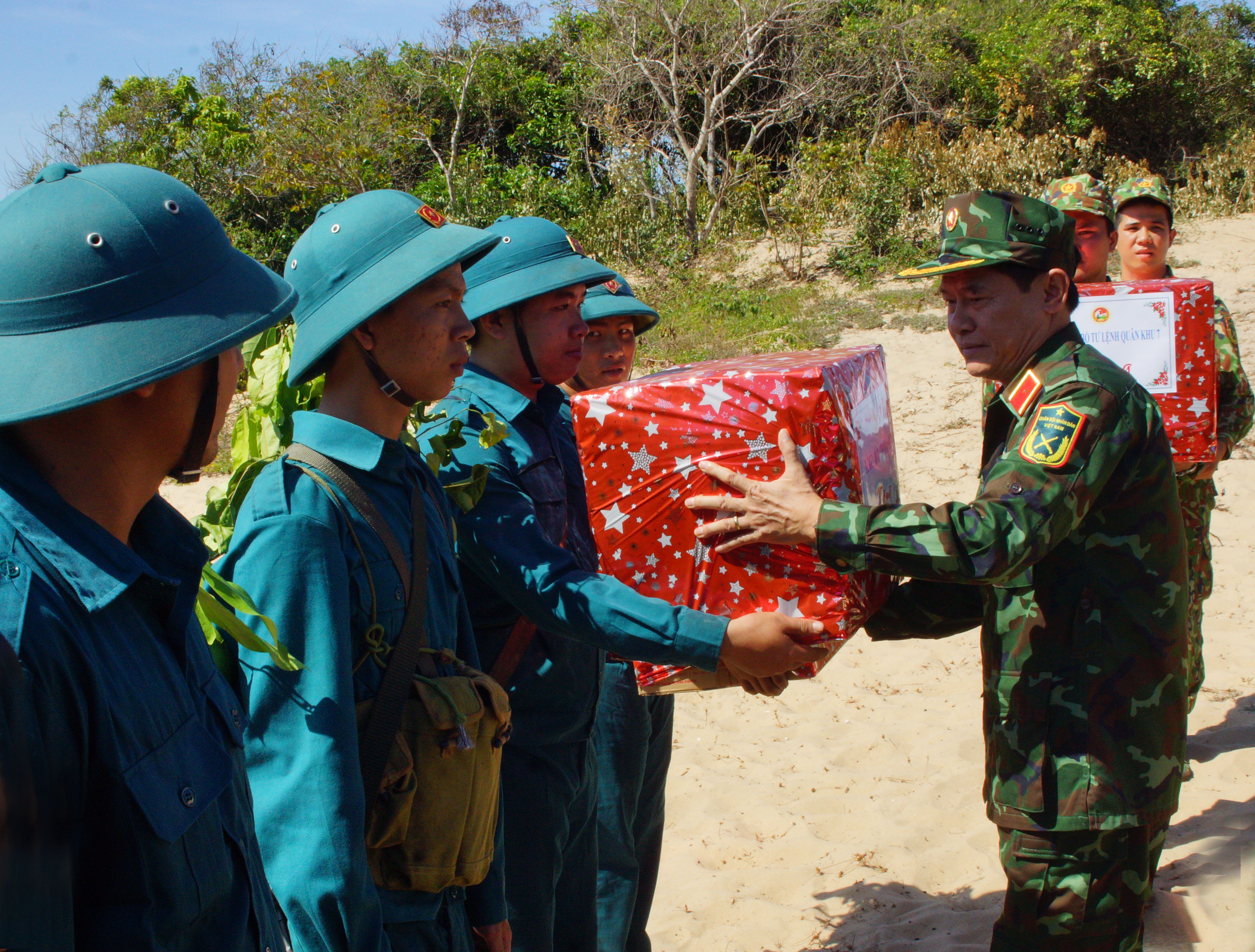 Thiếu tướng Lê Bửu Tuấn, Phó Tư lệnh - Tham mưu trưởng Quân khu 7 tặng quà cho lực lượng dân quân tỉnh Bình Thuận