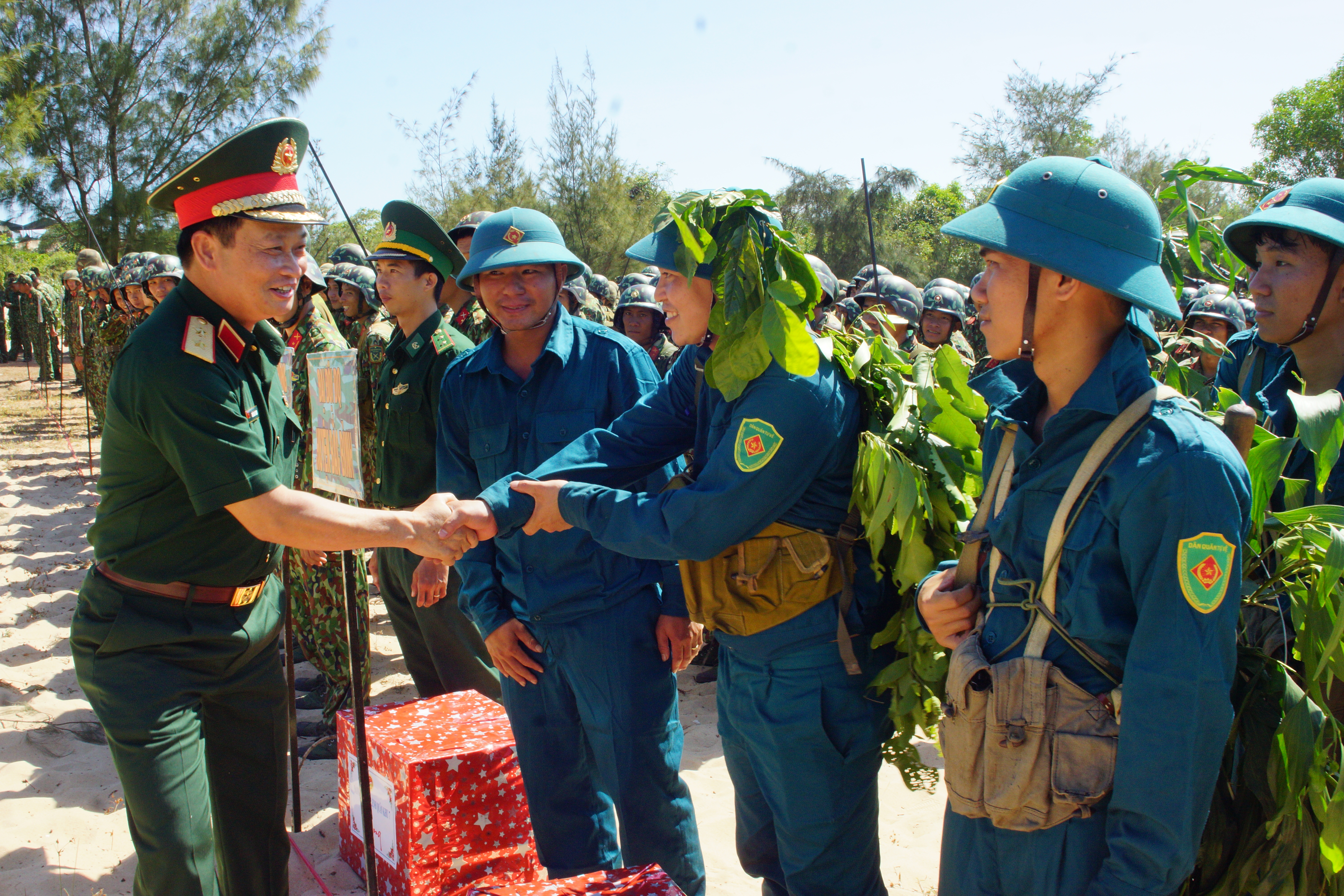 Trung tướng Trần Hoài Trung, Bí thư Đảng ủy, Chính ủy Quân khu 7 chúc mừng lực lượng dân quân tỉnh Bình Thuận hoàn thành nhiệm vụ