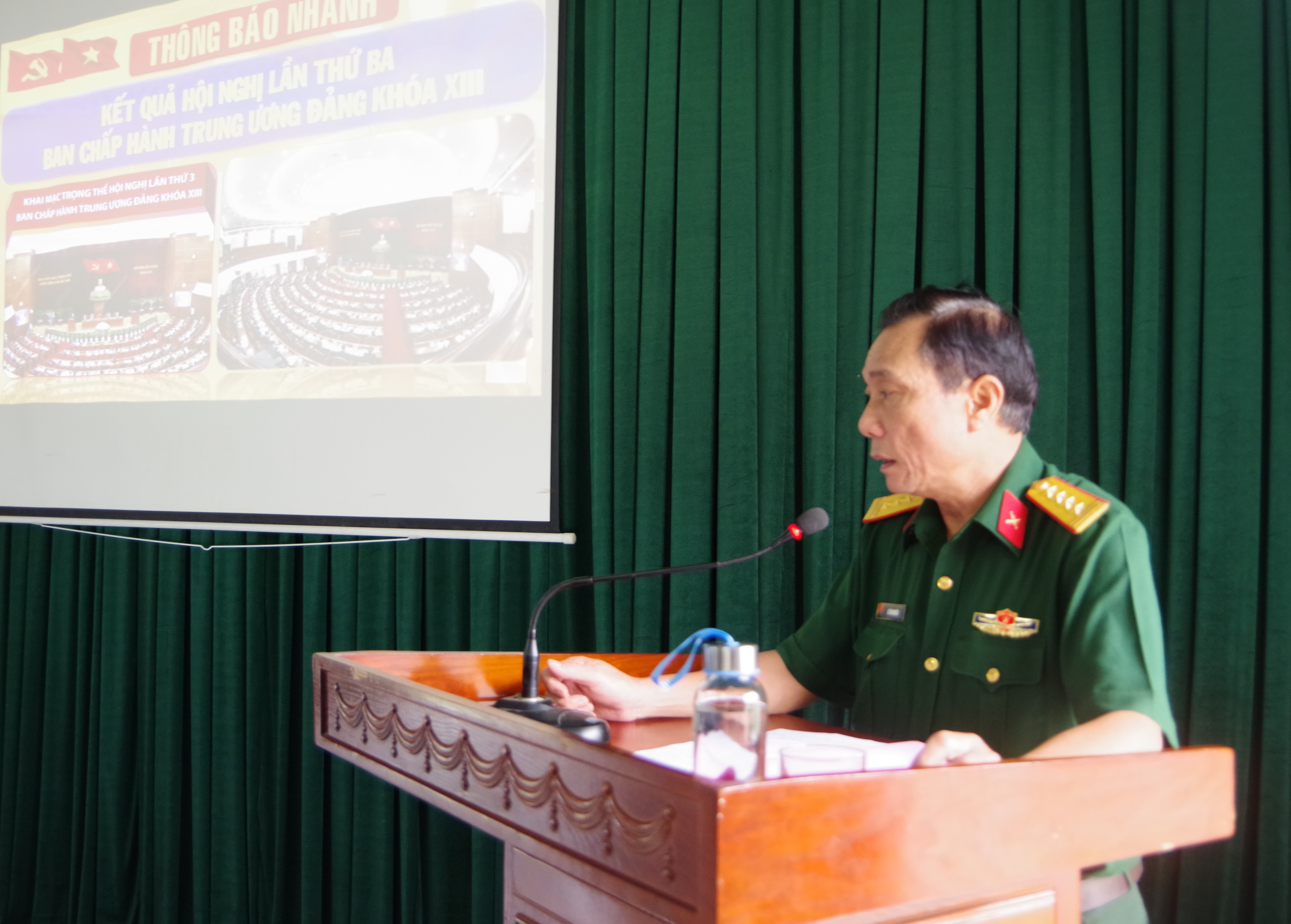 Đại tá Lý Văn Nghiêu, Bí thư Đảng ủy, Chính ủy Sư đoàn thông báo nhanh kết quả Hội nghị lần thứ 3, Ban chấp hành Trung ương Đảng khóa XIII.