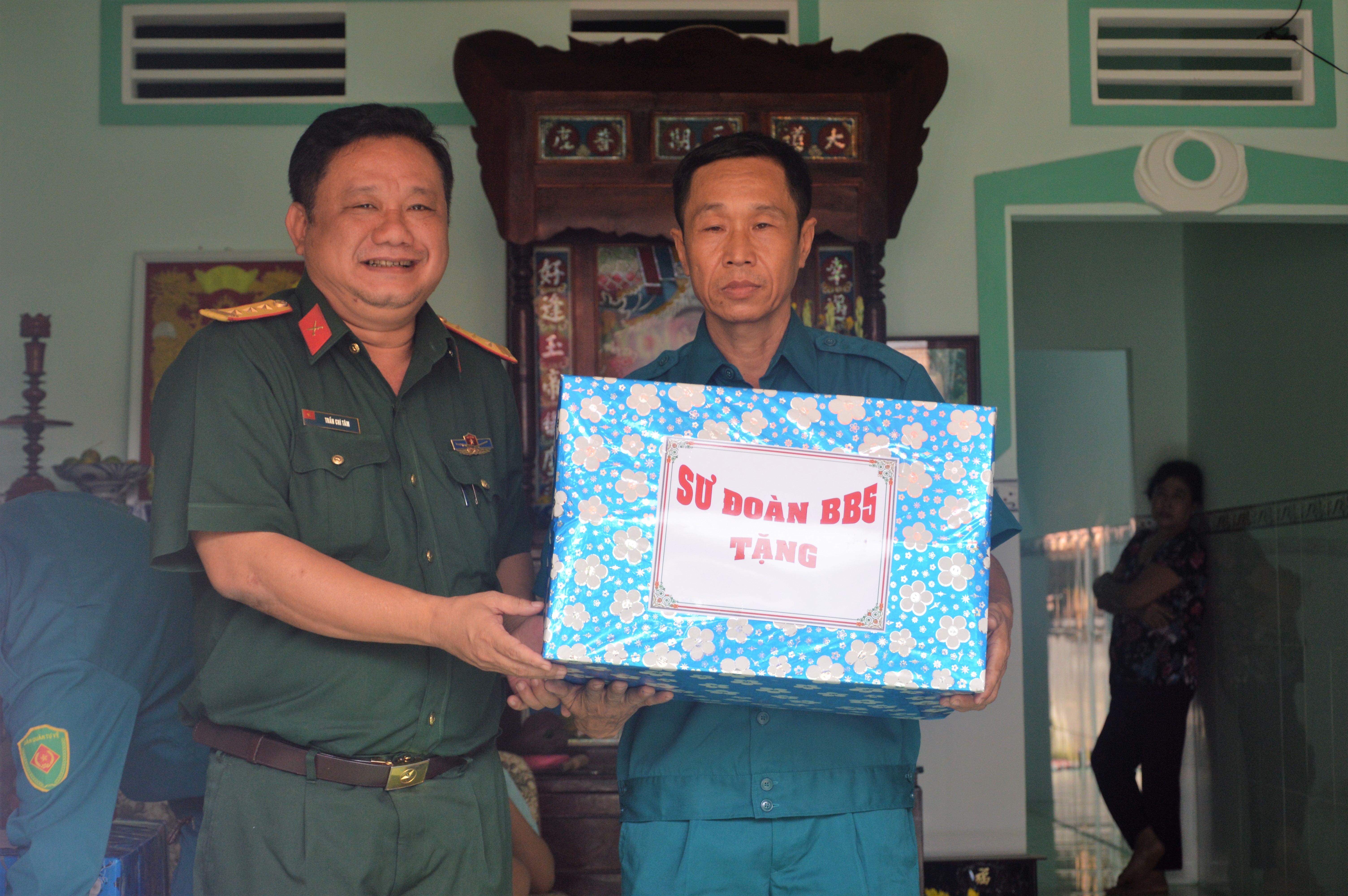 Thượng tá Trần Chí Tâm, Phó Chính ủy Sư đoàn 5 tặng quà cho gia đình đồng chí Lê Minh Chiến.