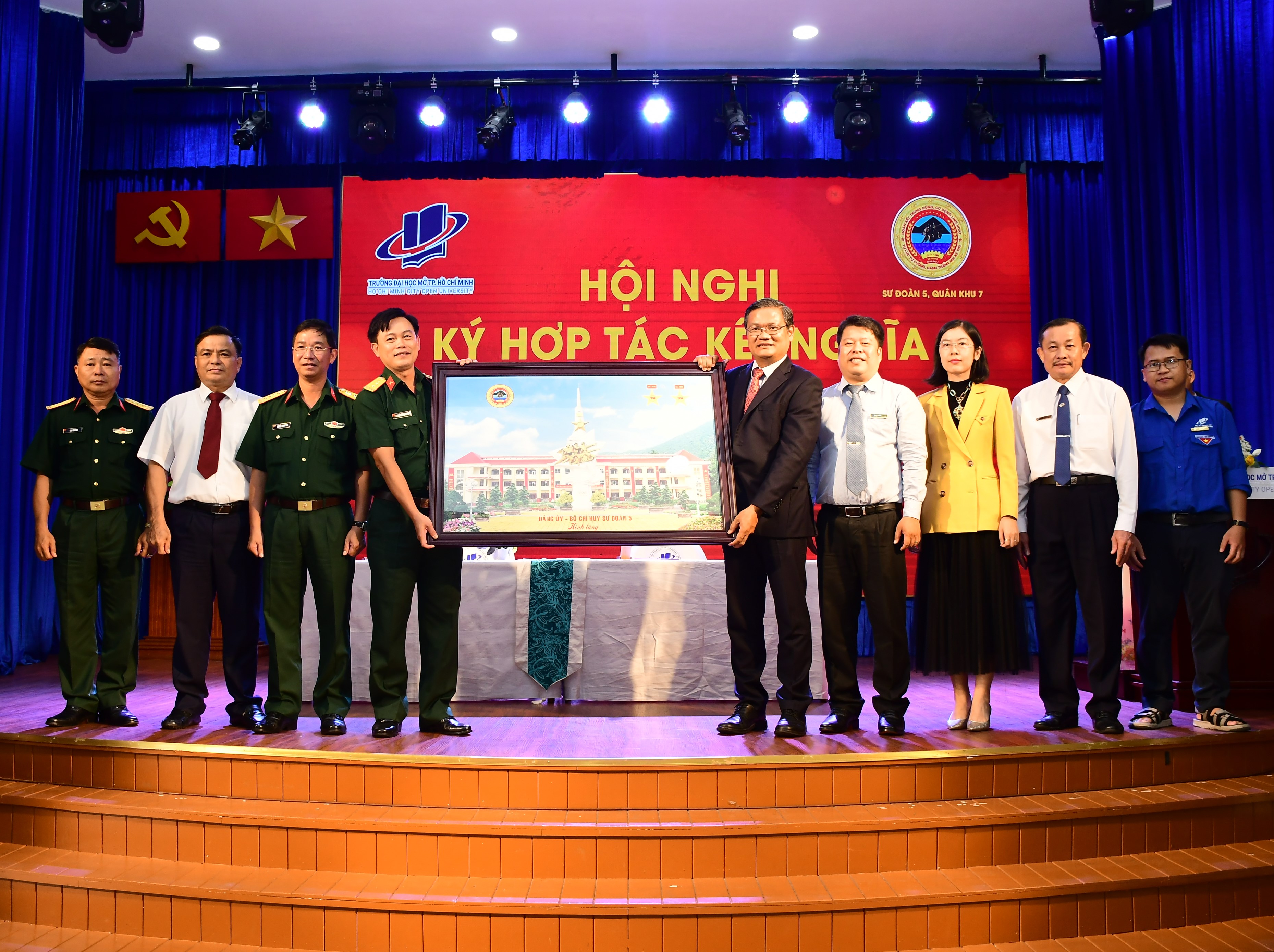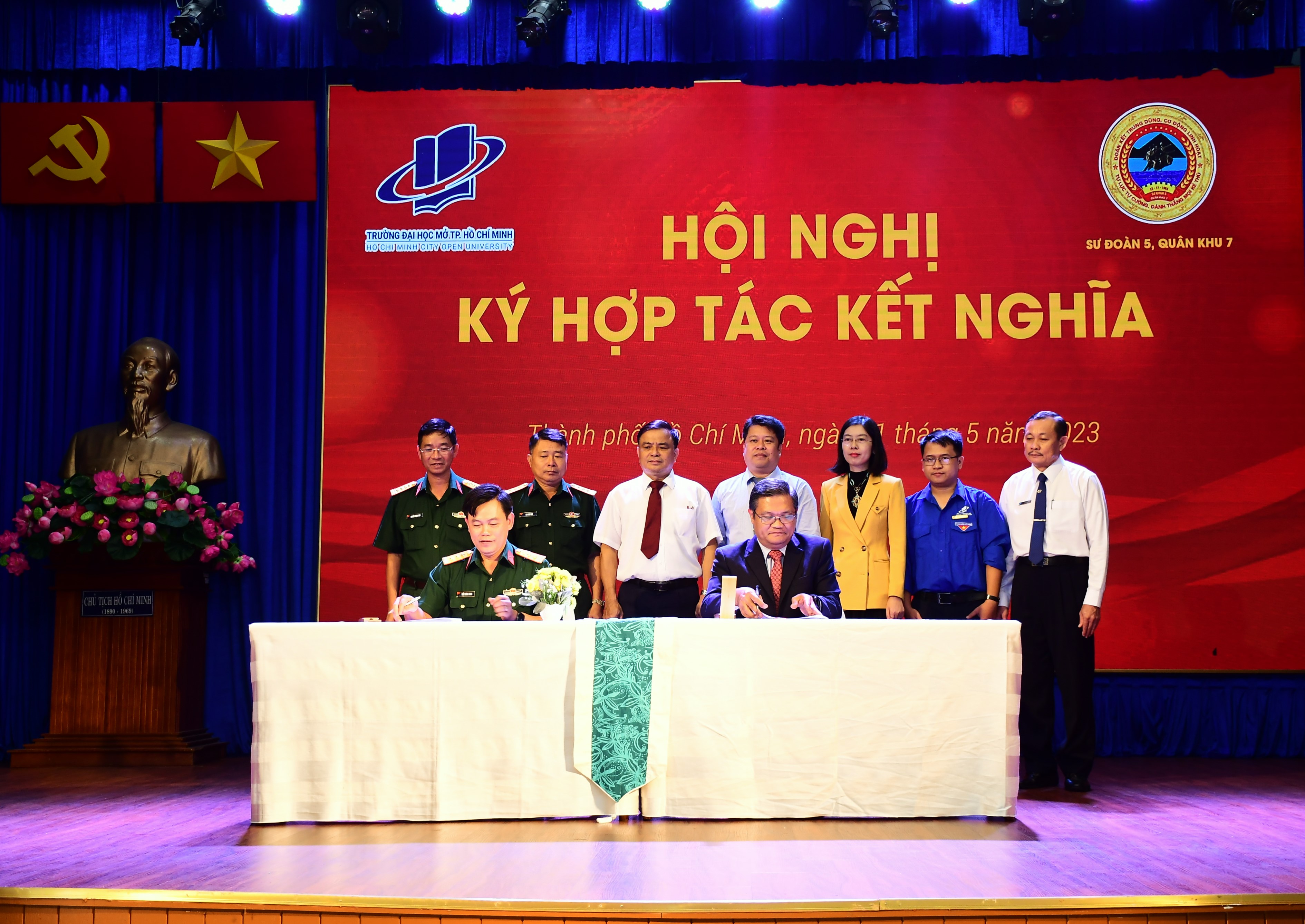 Phát biểu tại buổi ký kết nghĩa, Đại tá Trần Đức Thắng, Phó Chủ nhiệm Chính trị Quân khu 7 cho biết để hoàn thành tốt nhiệm vụ trong tình hình mới, việc học tập nâng cao trình độ rất cần thiết đối với đội ngũ cán bộ Quân đội nói chung cũng như với cán bộ LLVT Quân khu 7, Sư đoàn 5. Việc ký hợp tác kết nghĩa với Trường Đại học Mở Thành phố Hồ Chí Minh sẽ tạo điều kiện thuận lợi để sư đoàn nâng cao chất lượng, trình độ học vấn cho đội ngũ cán bộ, quân nhân chuyên nghiệp. Đồng chí mong sự hợp tác giữa Sư đoàn 5 với Trường Đại học Mở Thành phố Hồ Chí Minh ngày càng đi vào chiều sâu, phát huy chất lượng, hiệu quả, góp phần thiết thực vào sự phát triển của hai đơn vị.