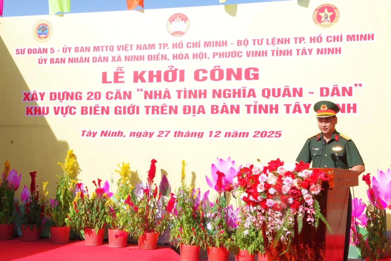 (QK7 Online) - Ngày 27/12, Sư đoàn 5 phối hợp với Ủy ban MTTQ Việt Nam TP.HCM, Bộ Tư lệnh TP. Hồ Chí Minh và UBND các xã Ninh Điền, Hòa Hội, Phước Vinh tổ chức Lễ khởi công xây dựng 20 căn “Nhà tình nghĩa quân – dân” trên địa bàn khu vực biên giới tỉnh Tây Ninh.
