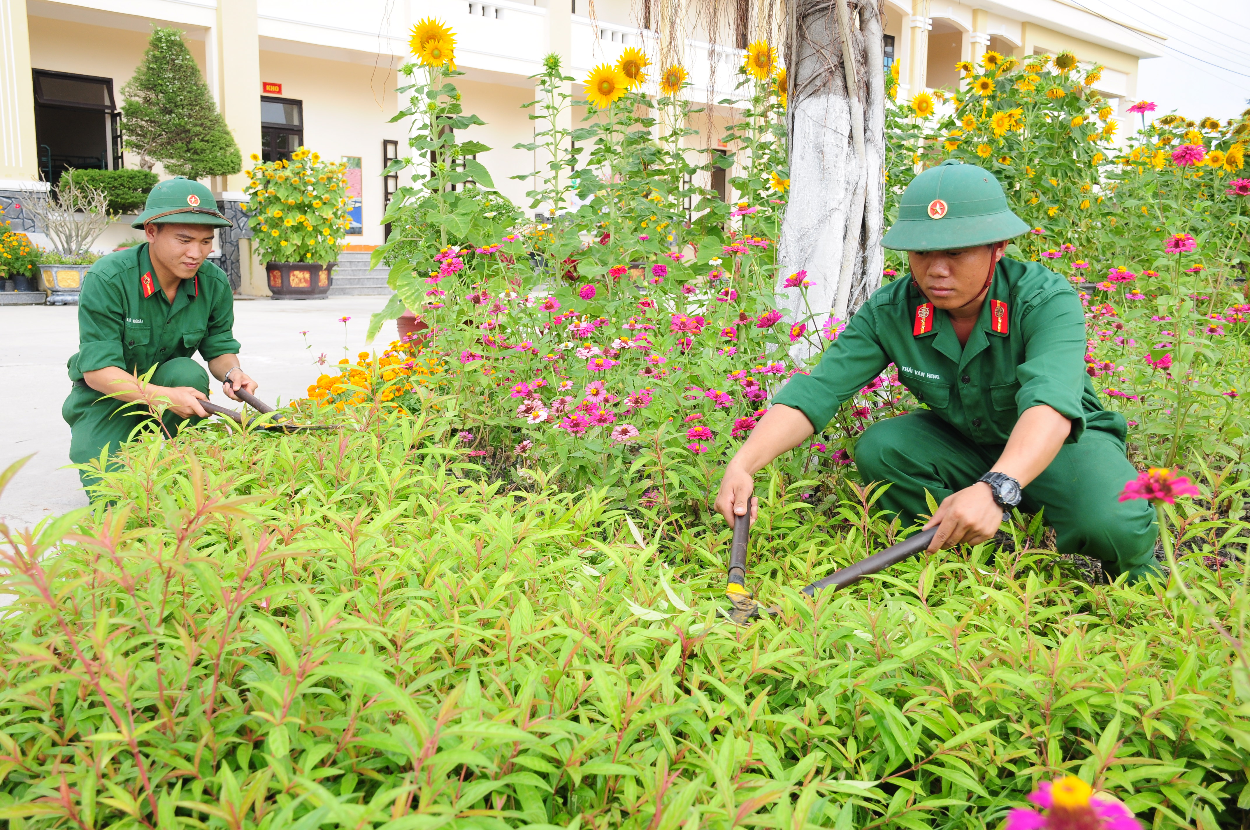 Tượng Đài chiến thắng Sư đoàn 5 được trồng hoa chỉnh trang sạch đẹp