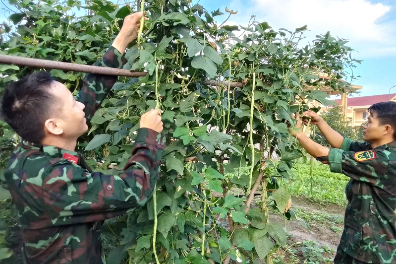 Cán bộ, chiến sĩ Sư đoàn thực hiện tốt công tác tăng gia sản xuất.