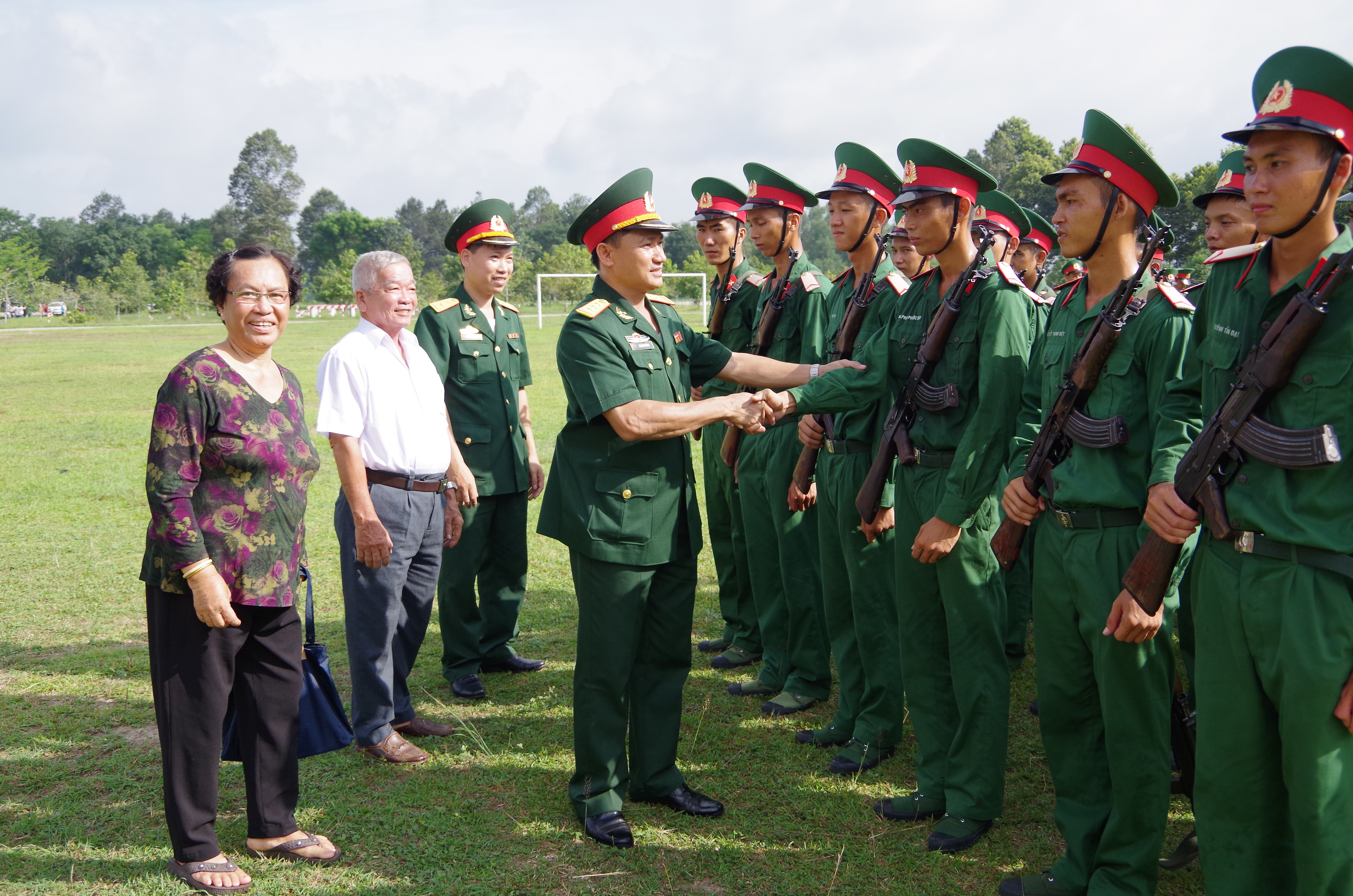 Thủ trưởng Sư đoàn và người thân thăm hỏi, động viên chiến sĩ mới