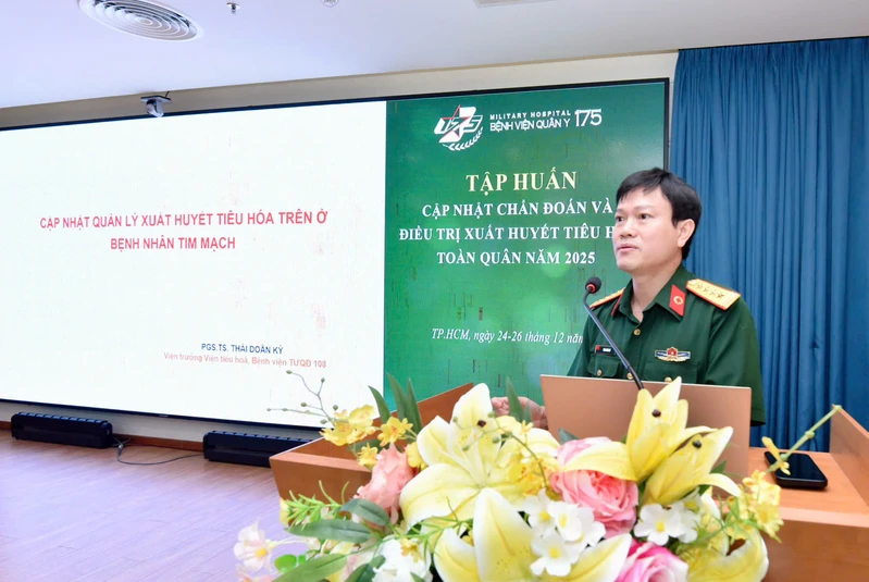 Thượng tá, PGS.TS.BS Đào Đức Tiến, Phó Giám đốc Bệnh viện Quân y 175 cho biết: Xuất huyết tiêu hóa là bệnh lý nội khoa cấp tính thường gặp, diễn biến phức tạp và có thể đe dọa tính mạng người bệnh nếu không được chẩn đoán và xử trí kịp thời, đúng phác đồ. Việc thường xuyên cập nhật kiến thức chuyên môn mới có ý nghĩa đặc biệt quan trọng, góp phần nâng cao năng lực khám bệnh, sàng lọc, chẩn đoán; đồng thời tiếp cận và áp dụng hiệu quả các phương pháp điều trị hiện đại, qua đó nâng cao chất lượng công tác cấp cứu và điều trị xuất huyết tiêu hóa tại các tuyến quân y trong toàn quân.