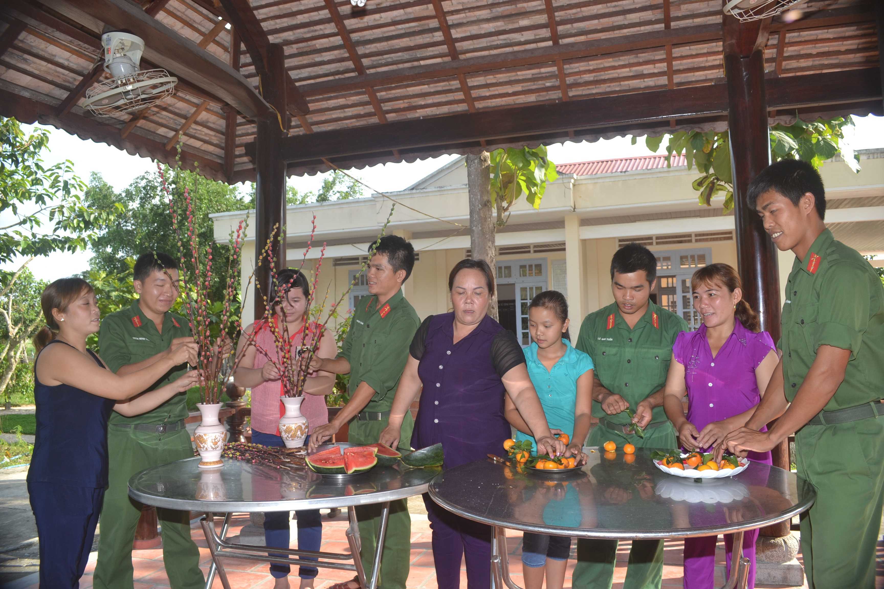 Thượng úy Nguyễn Hoàng Quá, Đại đội trưởng cho biết: Để các chiến sĩ vui tết, đón xuân, đơn vị chuẩn bị nhiều hoạt động như: Tổ chức các trò chơi quân sự, thi hát karaoke và các trò chơi dân gian… Ngày cuối năm, đơn vị tổ chức họp mặt lãnh đạo địa phương và gia đình cán bộ, chiến sĩ đón tết cùng đơn vị. Đồng thời, phối hợp Hội Phụ nữ, Trường Tiểu học, xã Đoàn Thành Long … và các đơn vị kết nghĩa chuẩn bị đầy đủ các món ăn truyền thống cho ngày tết của dân tộc Việt Nam, để cán bộ, chiến sĩ trong toàn đơn vị cùng nhau vui xuân mới tại đơn vị. Ngoài các chế độ theo tiêu chuẩn quy định, nhờ tăng gia sản xuất, đơn vị tặng quà tết cho mỗi chiến sĩ từ 200.000 đồng đến 500.000 đồng, đưa vào ăn thêm cho cán bộ, chiến sĩ trong những ngày tết.