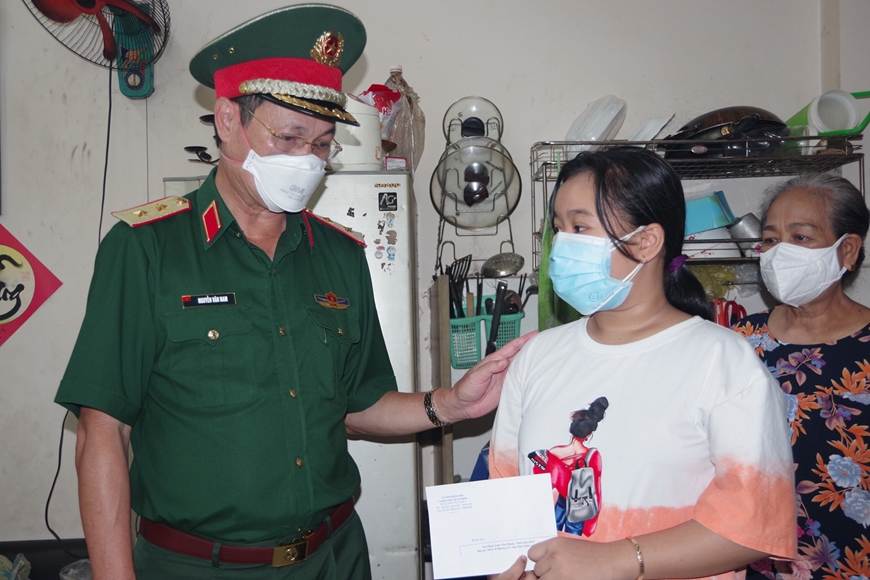 Đoàn đến thăm, tặng quà gia đình hai em: Phạm Lâm Yến Phụng (sinh năm 2010) và Phạm Lâm Yến Hoàng (sinh năm 2011) có cha và mẹ mất vì Covid-19; gia đình em Lê Gia Phát (sinh năm 2016) có mẹ và ông ngoại mất vì Covid-19; gia đình em Võ Lâm Hoàng Khang (sinh năm 2010) có mẹ mất do Covid-19.