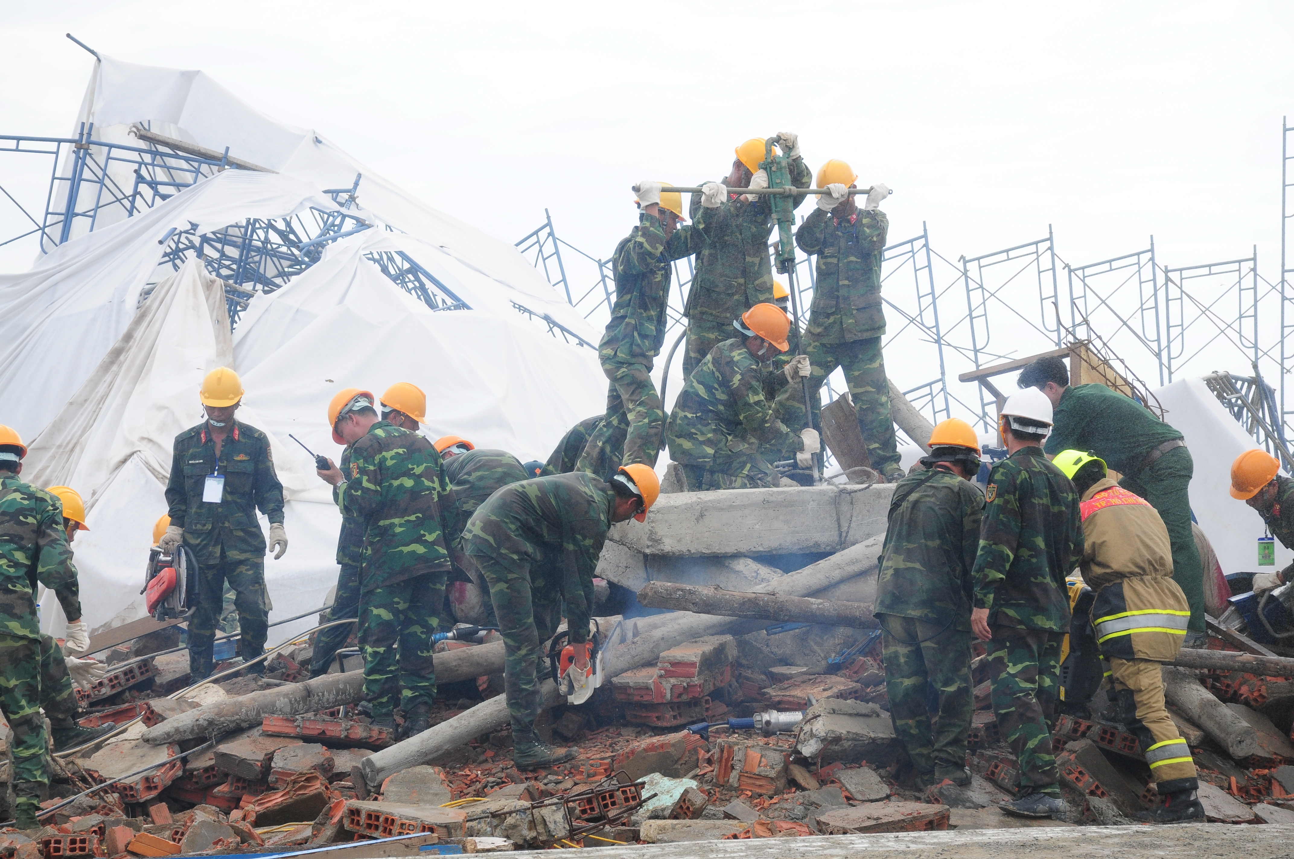 Lực lượng Công binh Lữ đoàn 25 tiến hành cứu người tại công trình đổ sập