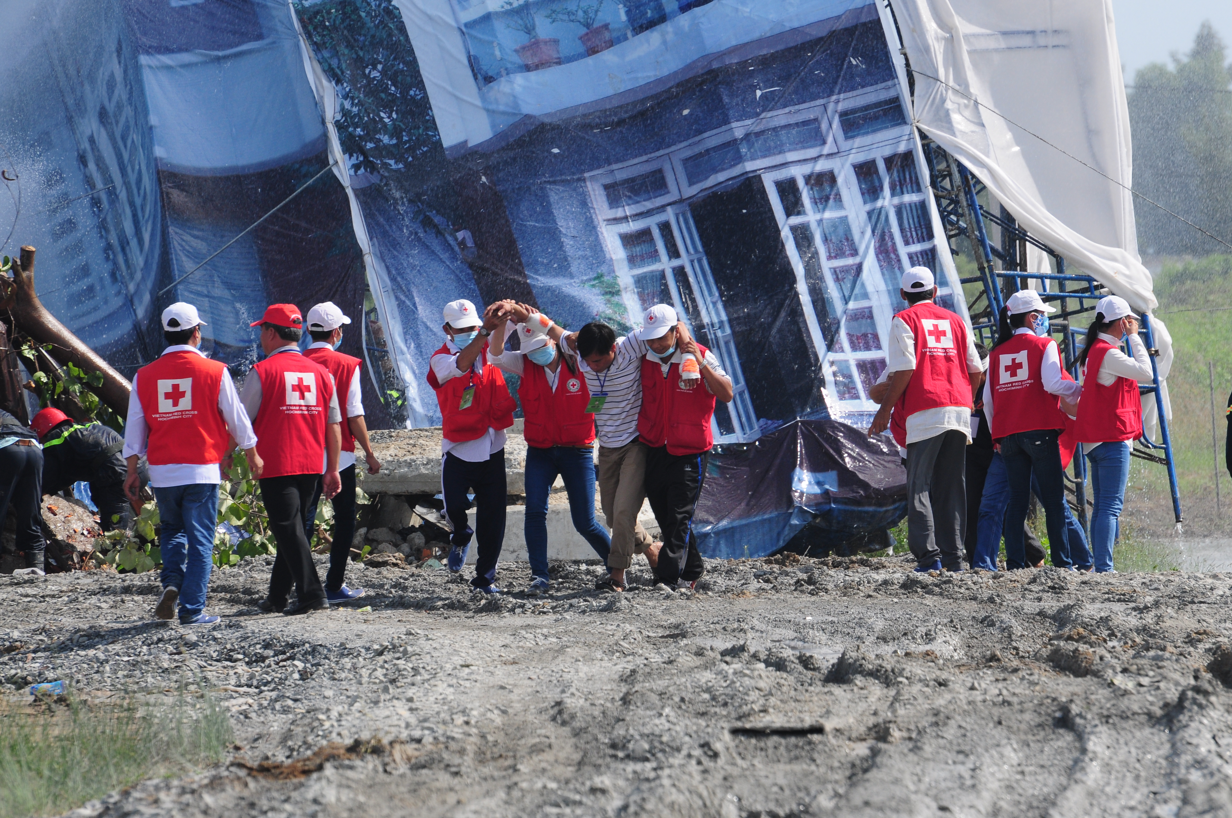 Hội Chữ thập đỏ đưa người bị nạn về nơi sơ cứu