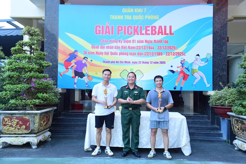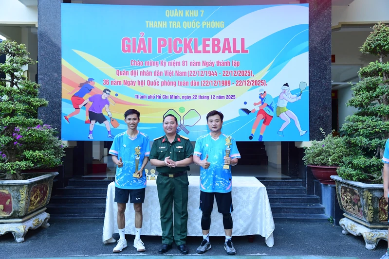 (QK7 Online) - Chiều ngày 22/12, Thanh tra Quốc phòng Quân khu 7 và Báo Quân khu 7 tổ chức giải giao lưu thể thao Pickleball nhân kỷ niệm 81 năm Ngày thành lập Quân đội Nhân dân Việt Nam (22/12/1944 - 22/12/2025), 36 năm Ngày hội Quốc phòng toàn dân (22/12/1989 – 22/12/2025).