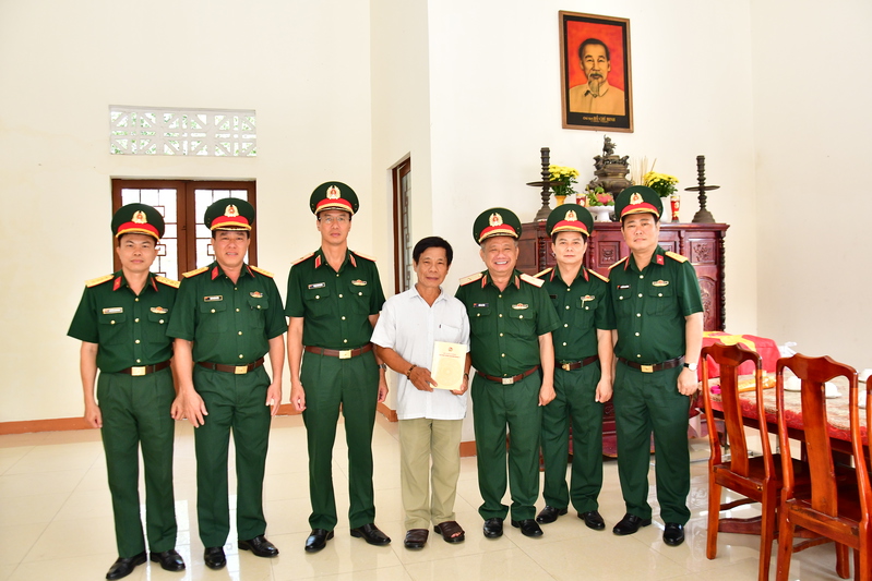 Thủ trưởng Bộ Tư lệnh Quân khu tặng quà cho Ban quản lý Nghĩa trang liệt sĩ.