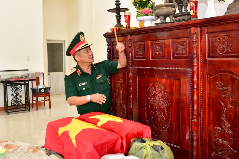 Thiếu tướng Trần Chí Tâm, Phó Chính ủy Quân khu thắp hương các liệt sĩ tại Nhà quàn Nghĩa trang liệt sĩ huyện Dầu Tiếng (cũ).