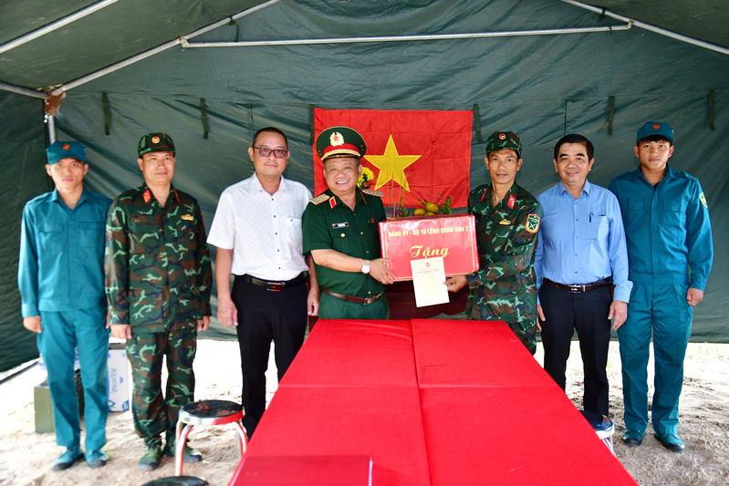 (QK7 Online) – Sáng ngày 7/10, Thiếu tướng Trần Chí Tâm, Phó Chính ủy Quân khu, Trưởng Ban chỉ đạo 515 Quân khu đến thăm, kiểm tra, động viên cán bộ, chiến sĩ Ban chỉ huy Phòng thủ khu vực 2 – Phú Lợi đang làm nhiệm vụ tìm kiếm, quy tập hài cốt liệt sĩ trên địa bàn ấp Phú Bình, xã Thanh An, TP. Hồ Chí Minh.