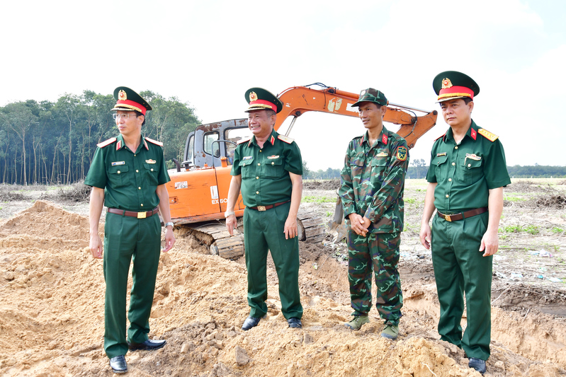 Thiếu tướng Trần Chí Tâm, Phó Chính ủy Quân khu và thủ trưởng Bộ Tư lệnh TP. Hồ Chí Minh kiểm tra khu vực tìm kiếm hài cốt liệt sĩ.