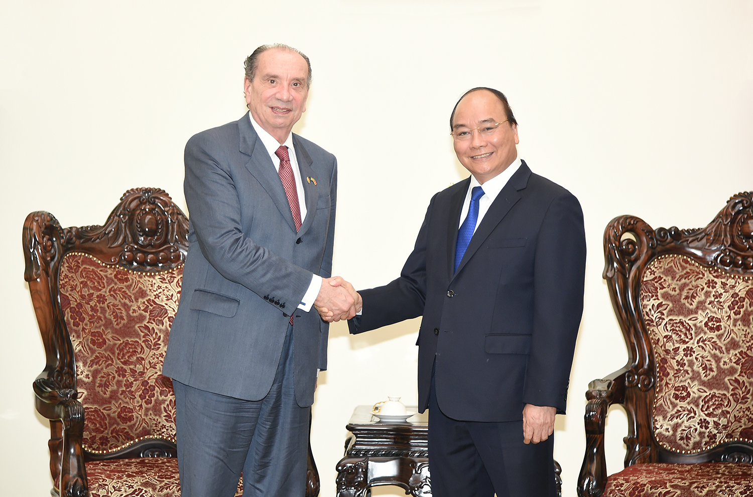 Thủ tướng Chính phủ Nguyễn Xuân Phúc tiếp Bộ trưởng Ngoại giao Brazil Aloysio Nunes Ferreira. Ảnh: VGP/Quamg Hiếu