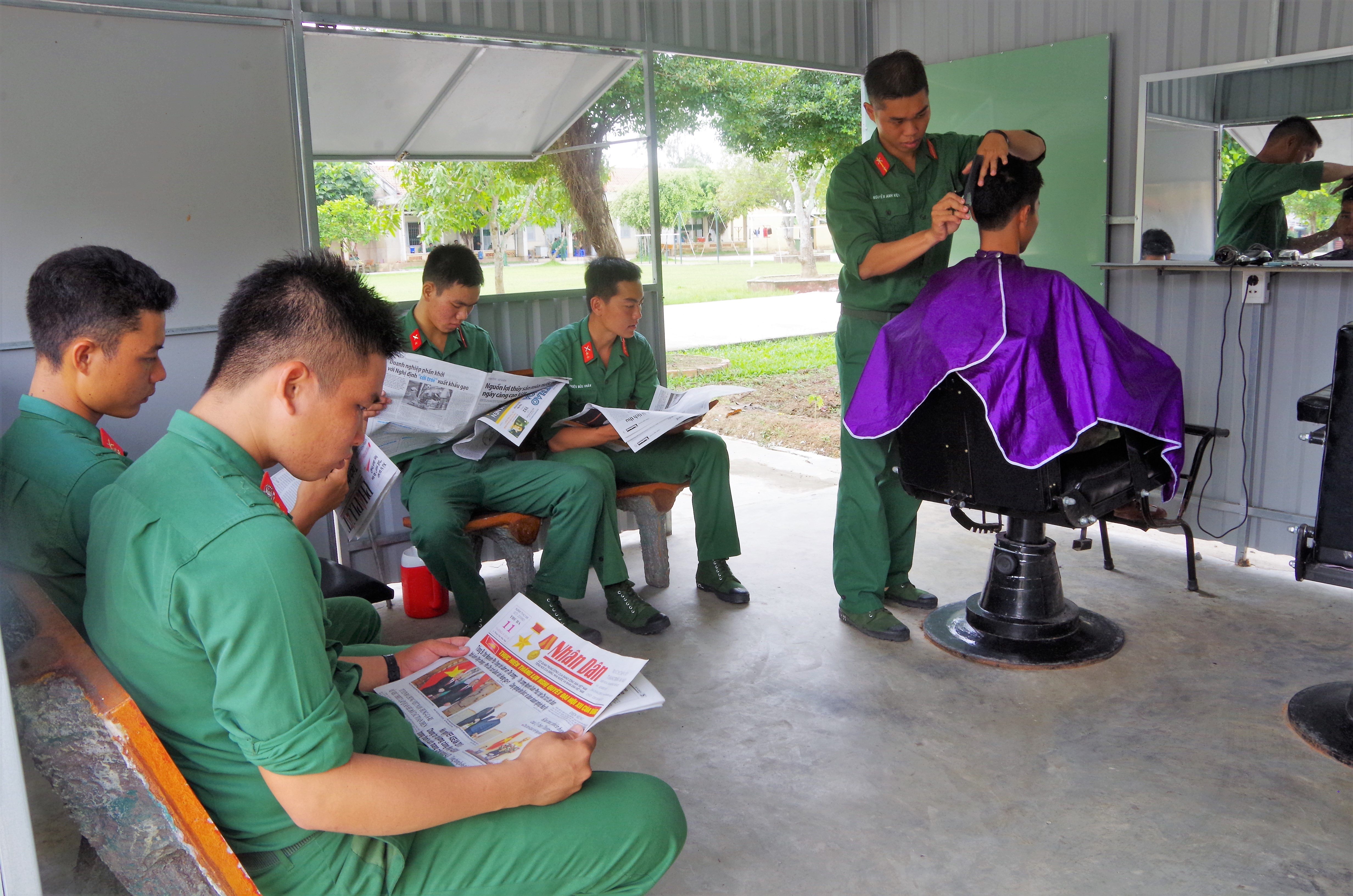 Chiến sĩ  Tiểu đoàn 1 đến cắt tóc trong ngày nghỉ.