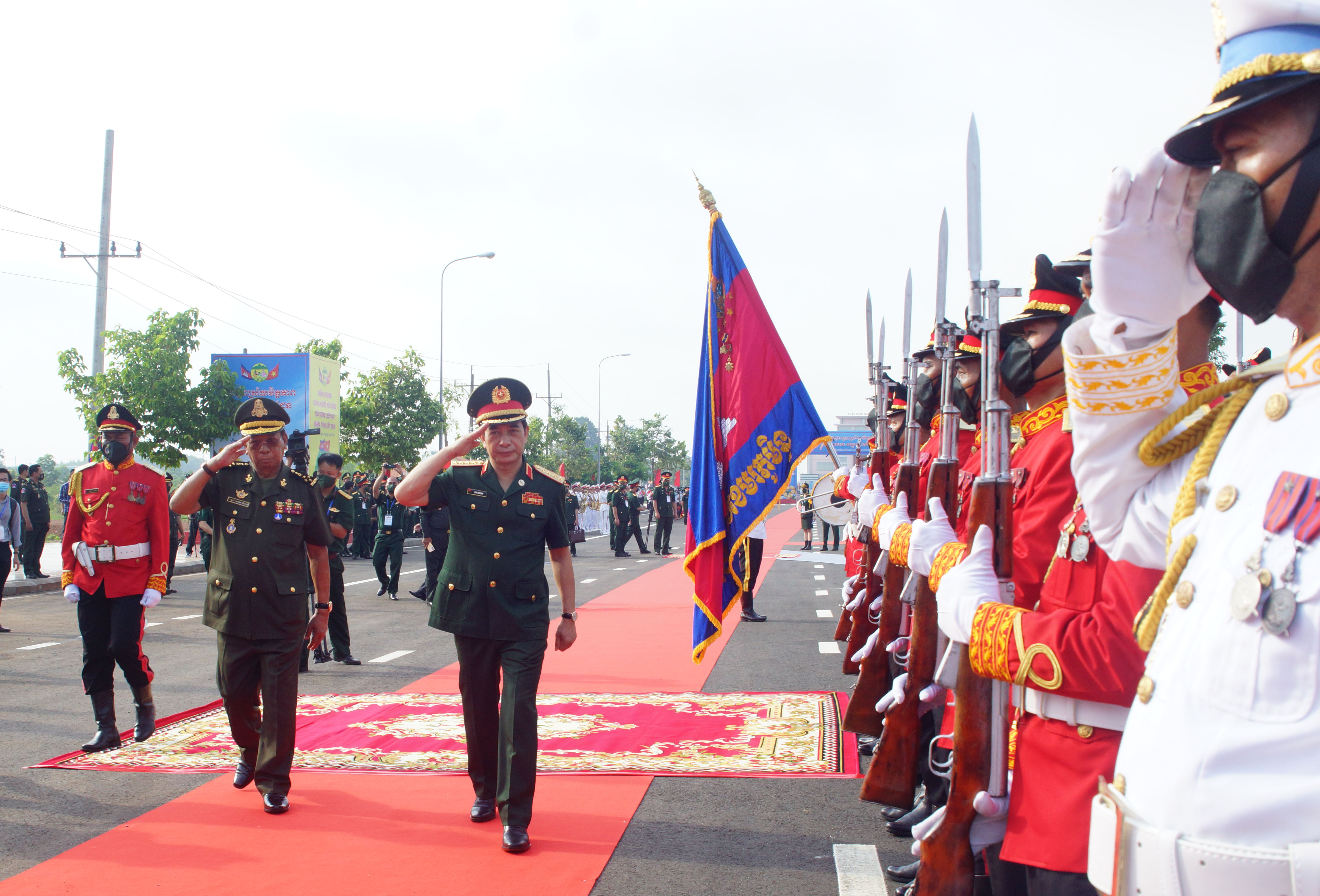 Lễ đón Bộ trưởng Bộ Quốc phòng Việt Nam sang dự các hoạt động tại Campuchia.