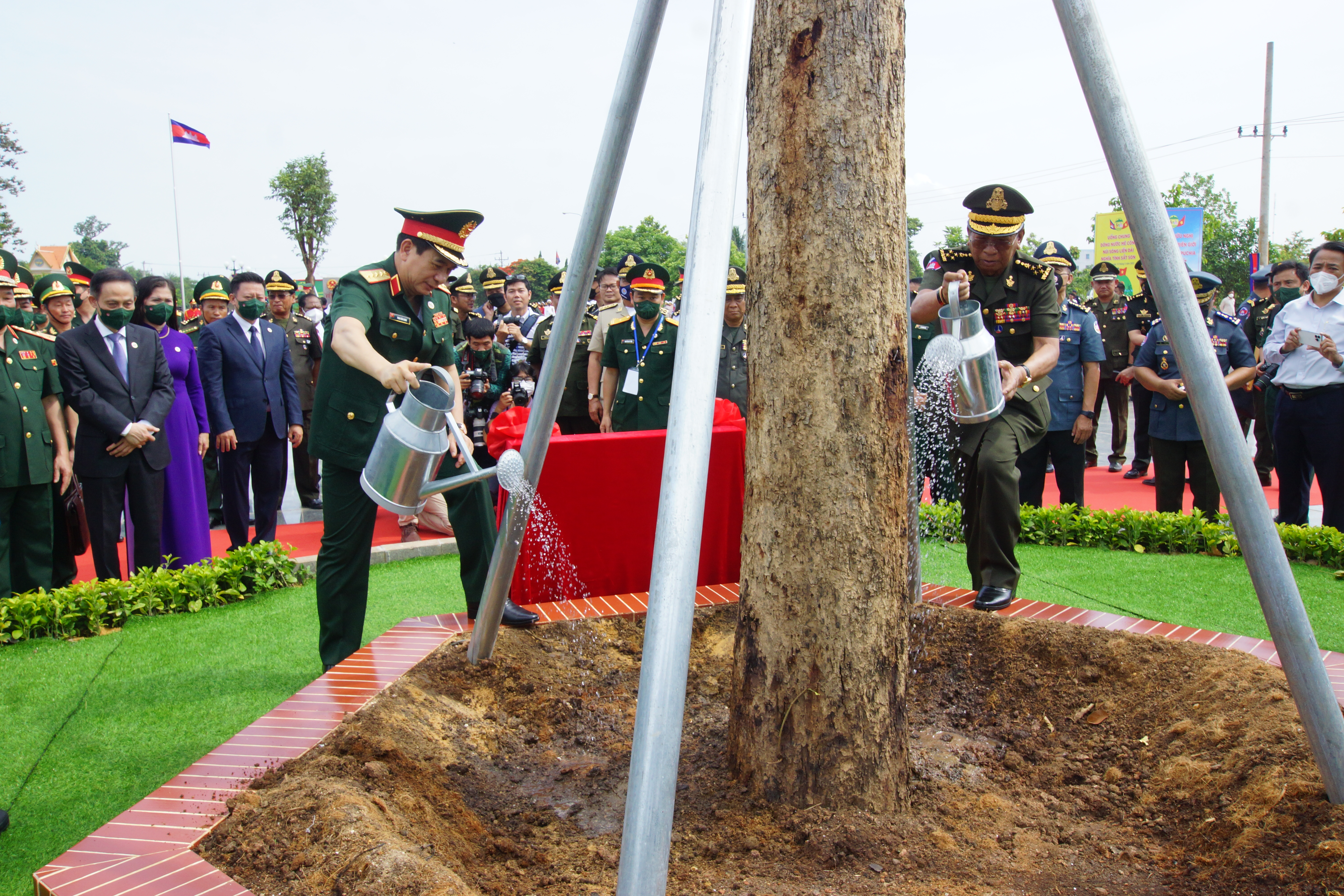 Hai Bộ trưởng trồng cây lưu niệm tại Cửa khẩu Quốc tế Hoa Lư.