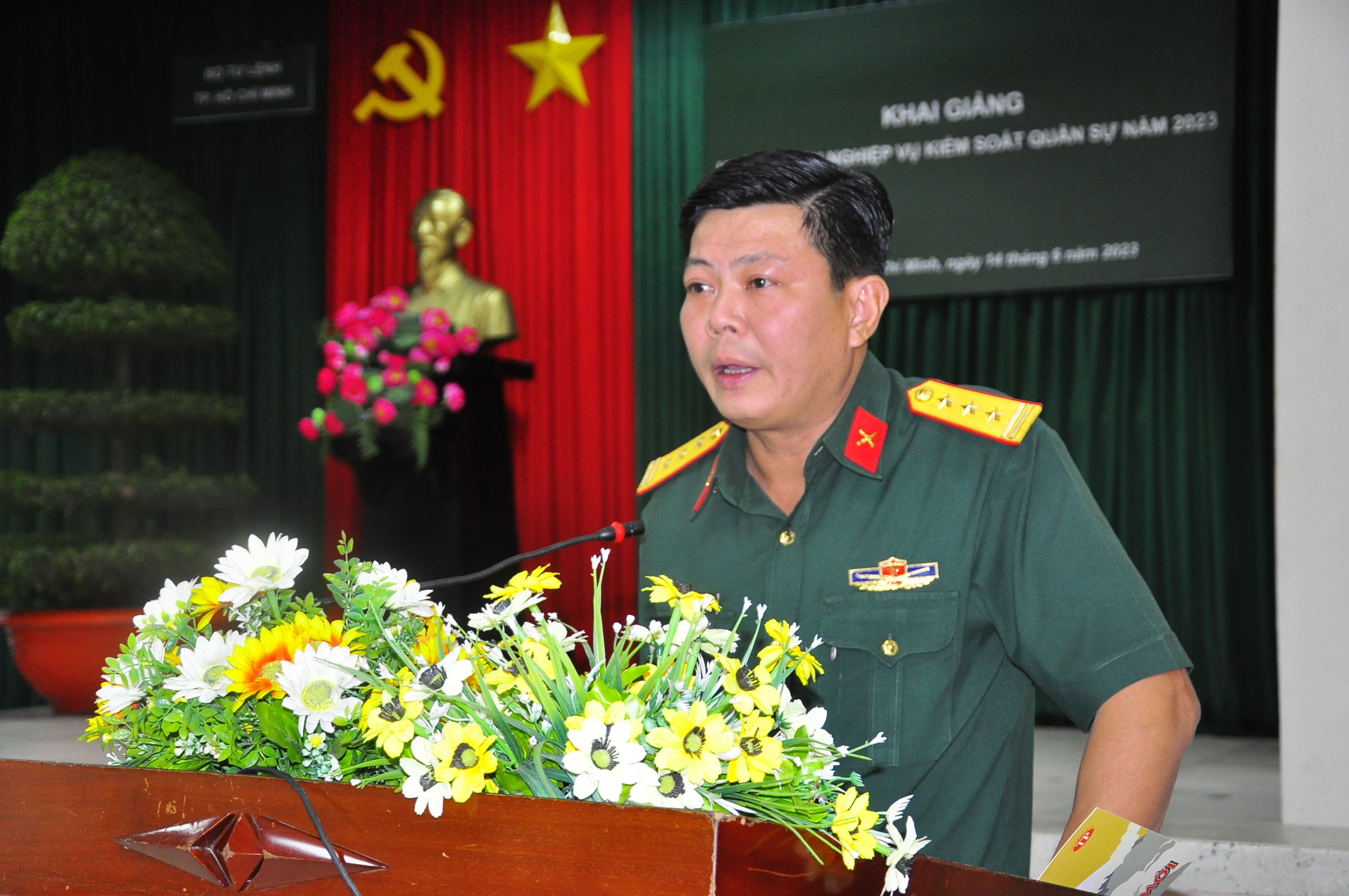 Thượng tá Nguyễn Văn Hậu, Phó Tham mưu trưởng Bộ Tư lệnh TP Hồ Chí Minh phát biểu giao nhiệm vụ cho lớp đào tạo.