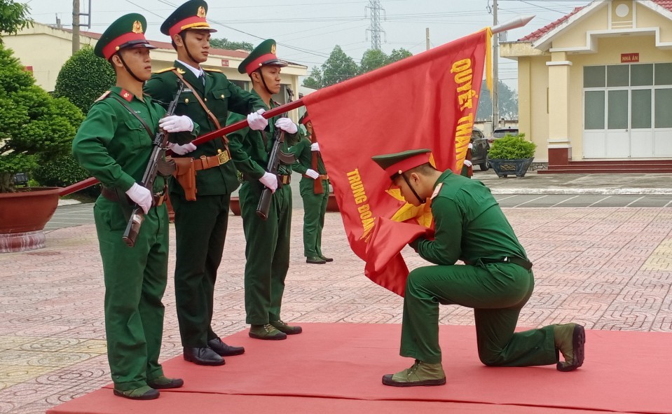 Chiến sĩ thực hiện ghi thức hôn Quân kỳ Quyết thắng.