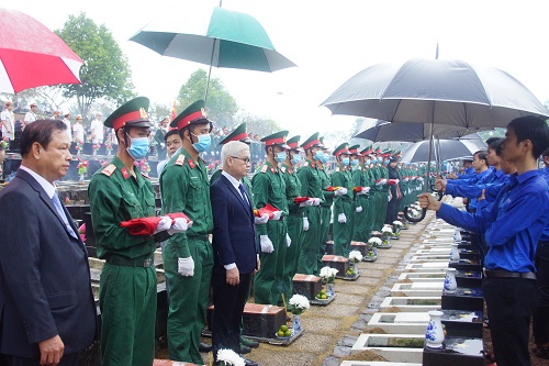 Đọc Điếu văn tại buổi lễ, đồng chí Trần Tuyết Minh, Phó Chủ tịch Ủy ban Nhân dân, Trưởng Ban Chỉ đạo 515 tỉnh Bình Phước bày tỏ lòng biết ơn vô hạn đối với công lao to lớn của các anh hùng liệt sĩ đã cống hiến, hy sinh vì sự nghiệp xây dựng, bảo vệ Tổ quốc. Đảng bộ, chính quyền, lực lượng vũ trang và Nhân dân tỉnh Bình Phước nguyện tuyệt đối trung thành với mục tiêu lý tưởng của Đảng, quyết tâm thi đua lao động, sản xuất, học tập, công tác, tiếp tục đóng góp xây dựng quê hương, đất nước ngày càng giàu đẹp, xứng đáng với sự hy sinh to lớn của các anh hùng liệt sĩ.
