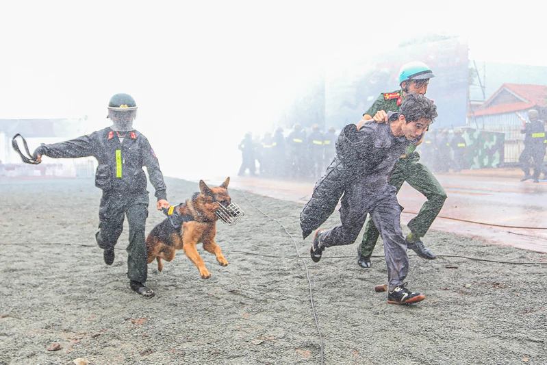 Tình huống diễn tập: Lực lượng cảnh sát tham gia thực binh giải tán đám đông gây rối, biểu tình, bạo loạn.
