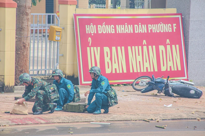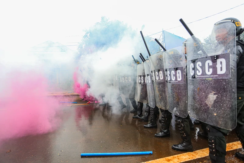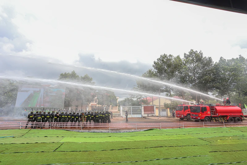 Tình huống diễn tập: Các lực lượng ngăn chặn, đẩy lùi đám đông.