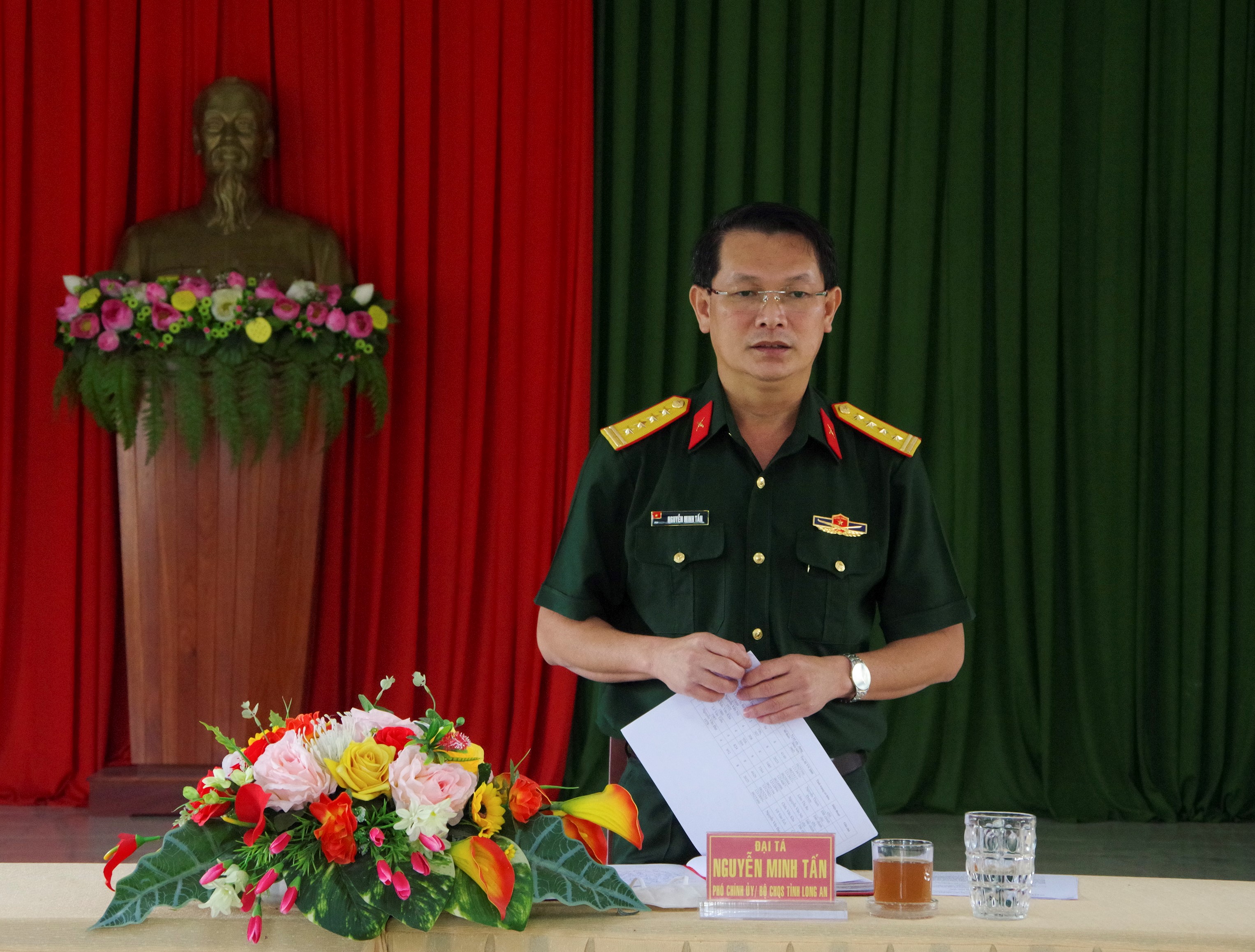 Đại tá Nguyễn Minh Tấn, Phó Chính ủy Bộ CHQS tỉnh Long An khẳng định, thông qua hội nghị đã tháo gỡ được các khó khăn gặp phải trong quá trình thực hiện đề án. Đồng chí Phó Chính ủy Bộ CHQS tỉnh đề nghị, lãnh đạo các xã biên giới tiếp tục tuyên truyền, vận động bà con ra sinh sống ở biên giới. Đề án được thực hiện hiệu quả sẽ tạo ra sức sống mãnh liệt, tạo sức hút rất lớn về phát triển kinh tế, Nhân dân càng phấn khởi bám trụ vững chắc góp phần bảo vệ biên cương Tổ quốc.