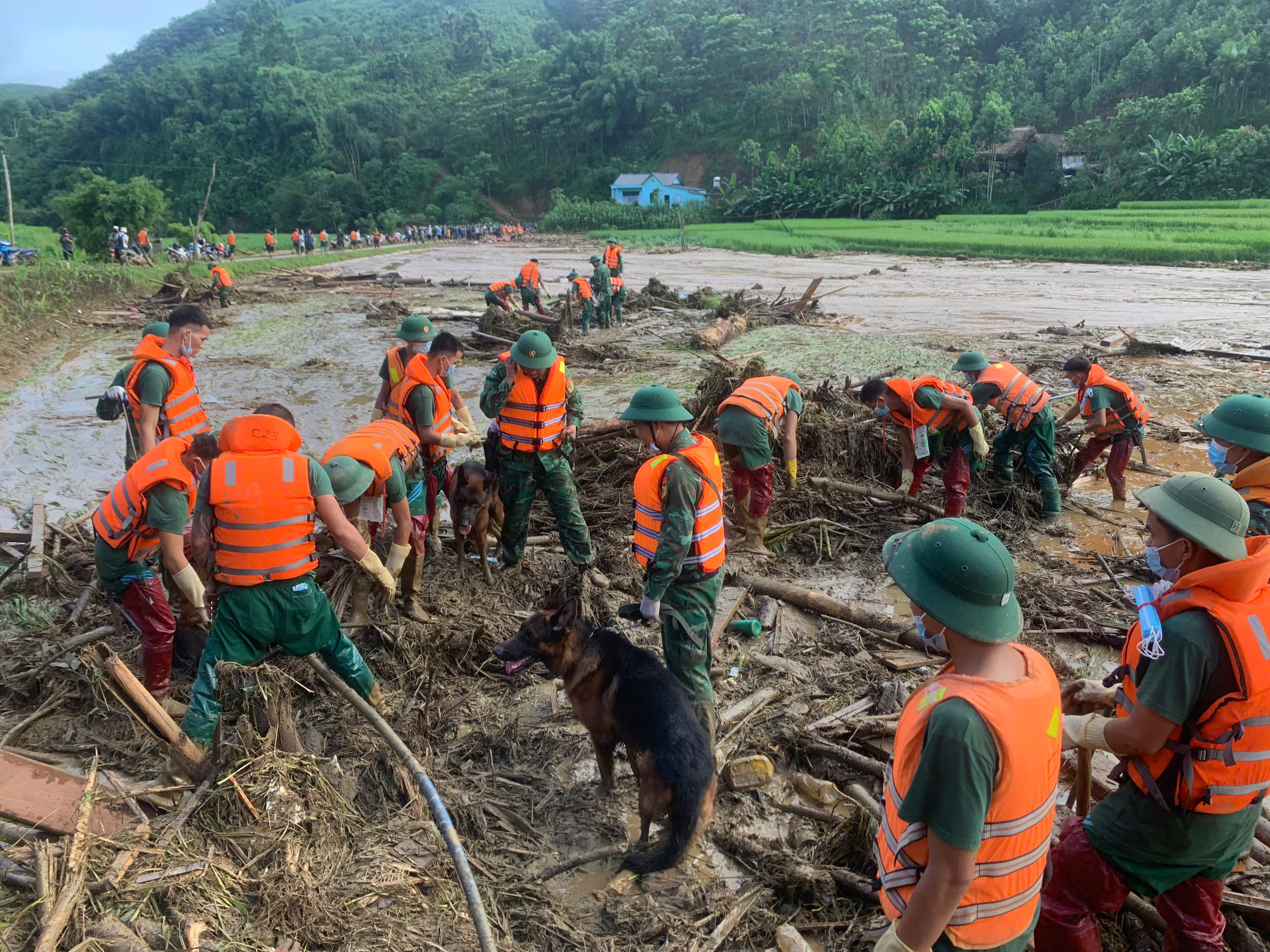Ngay sau khi nhận được thông tin về mức độ ảnh hưởng của trận lũ quét tại thôn Làng Nủ, các đơn vị Quân đội đã nhanh chóng đến hiện trường để phối hợp với chính quyền địa phương, các lực lượng chức năng triển khai công tác tìm kiếm cứu nạn. Thiếu tá Đoàn Văn Hoàn, Đội tìm kiếm cứu nạn Bộ đội Biên phòng cho biết: "Mặc dù phải tìm kiếm trong điều kiện hết sức khó khăn, lượng đất đá, bùn lầy rất lớn, cây cối ngổn ngang..., thế nhưng, với mong muốn góp phần xoa dịu nỗi đau của người dân nơi đây, chúng tôi sẵn sàng xông pha, đi vào những nơi gian khó, nguy hiểm nhất để tìm kiếm các nạn nhân, đảm bảo công tác cứu nạn đạt kết quả cao nhất".