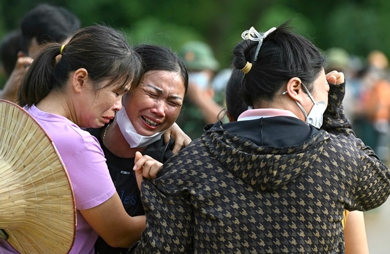 Nhiều thân nhân nạn nhân của lũ quét đau đớn khi mất đi người thân. Ảnh Việt Trung.