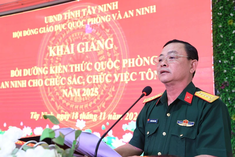(QK7 Online) - Ngày 18/11, Hội đồng giáo dục quốc phòng và an ninh (GDQP&AN) tỉnh Tây Ninh tổ chức khai giảng lớp bồi dưỡng kiến thức quốc phòng và an ninh cho chức sắc, chức việc năm 2025. Đại tá Trần Đình Hưng, Phó Chỉ huy trưởng, Tham mưu trưởng Bộ CHQS tỉnh, Phó Chủ tịch Hội đồng GDQP&AN tỉnh dự và phát biểu khai giảng.