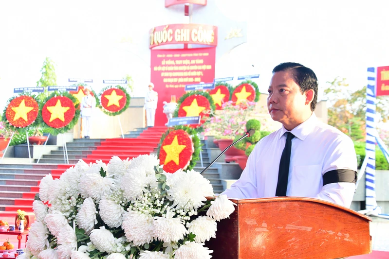 Đồng chí Phạm Tấn Hòa, Phó Chủ tịch UBND tỉnh, Trưởng Ban Chỉ đạo 515 tỉnh Tây Ninh phát biểu tại lễ truy điệu.