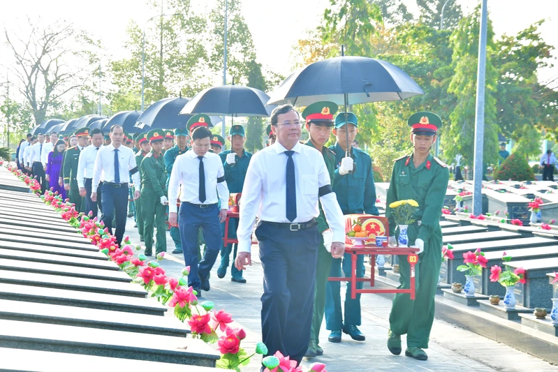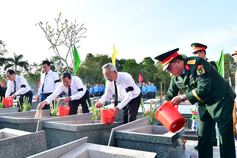 Trong không khí trang nghiêm, thành kính của buổi lễ, các đại biểu đã dâng hoa, dâng hương tri ân các anh hùng, liệt sĩ đã hy sinh vì sự nghiệp giải phóng dân tộc và nhiệm vụ quốc tế cao cả; thể hiện lòng biết ơn, đạo lý uống nước nhớ nguồn, đền ơn đáp nghĩa của Đảng bộ, chính quyền, LLVT và Nhân dân tỉnh Tây Ninh đối với các anh hùng, liệt sĩ.