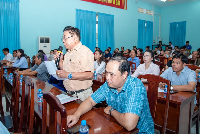 Cử tri nêu ý kiến tại buổi tiếp xúc.