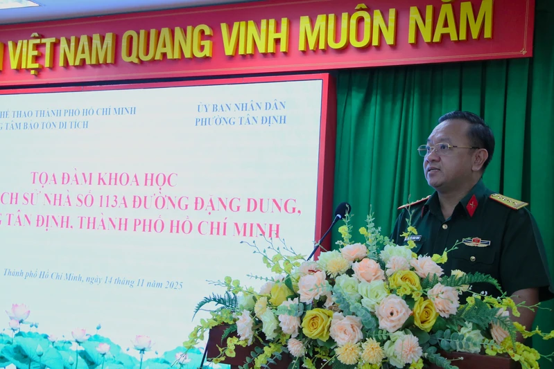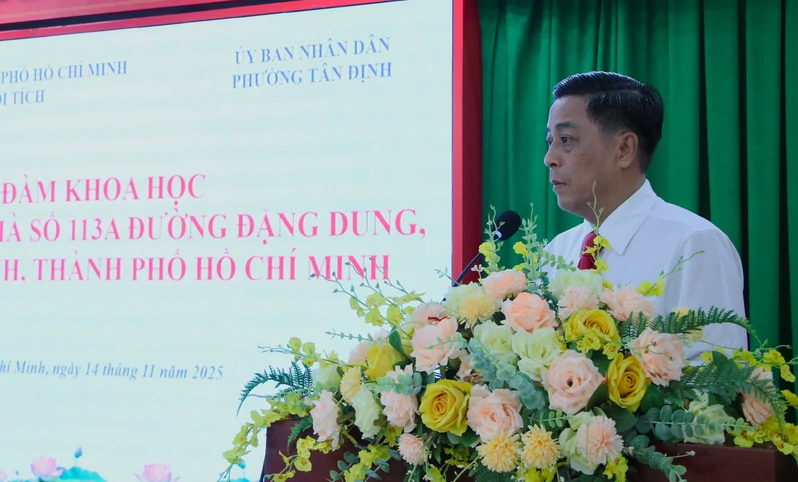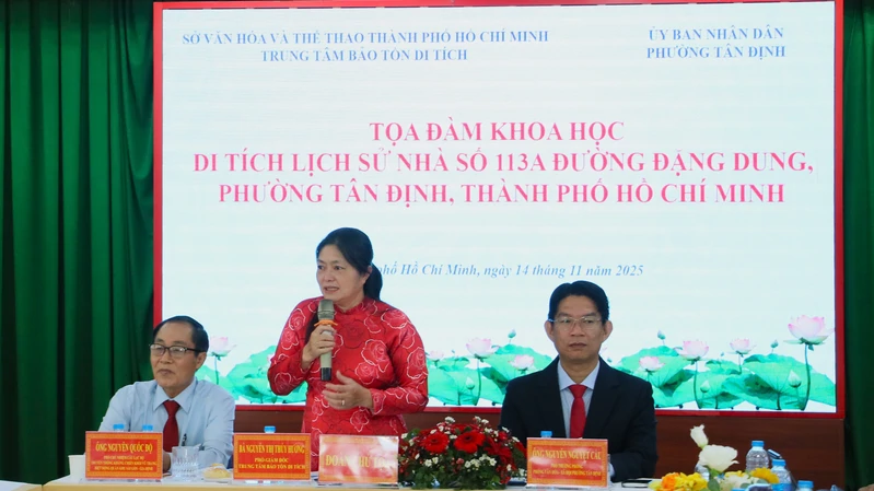 (QK7 Online) - Ngày 14/11, Trung tâm Bảo tồn Di tích (Sở Văn hóa và Thể thao Thành phố Hồ Chí Minh) đã phối hợp cùng Ủy ban nhân dân phường Tân Định tổ chức tọa đàm khoa học với chủ đề “Di tích lịch sử Nhà số 113A đường Đặng Dung, phường Tân Định, Thành phố Hồ Chí Minh” nhằm hoàn thiện, đề xuất xếp hạng di tích đối với "địa chỉ đỏ" này.