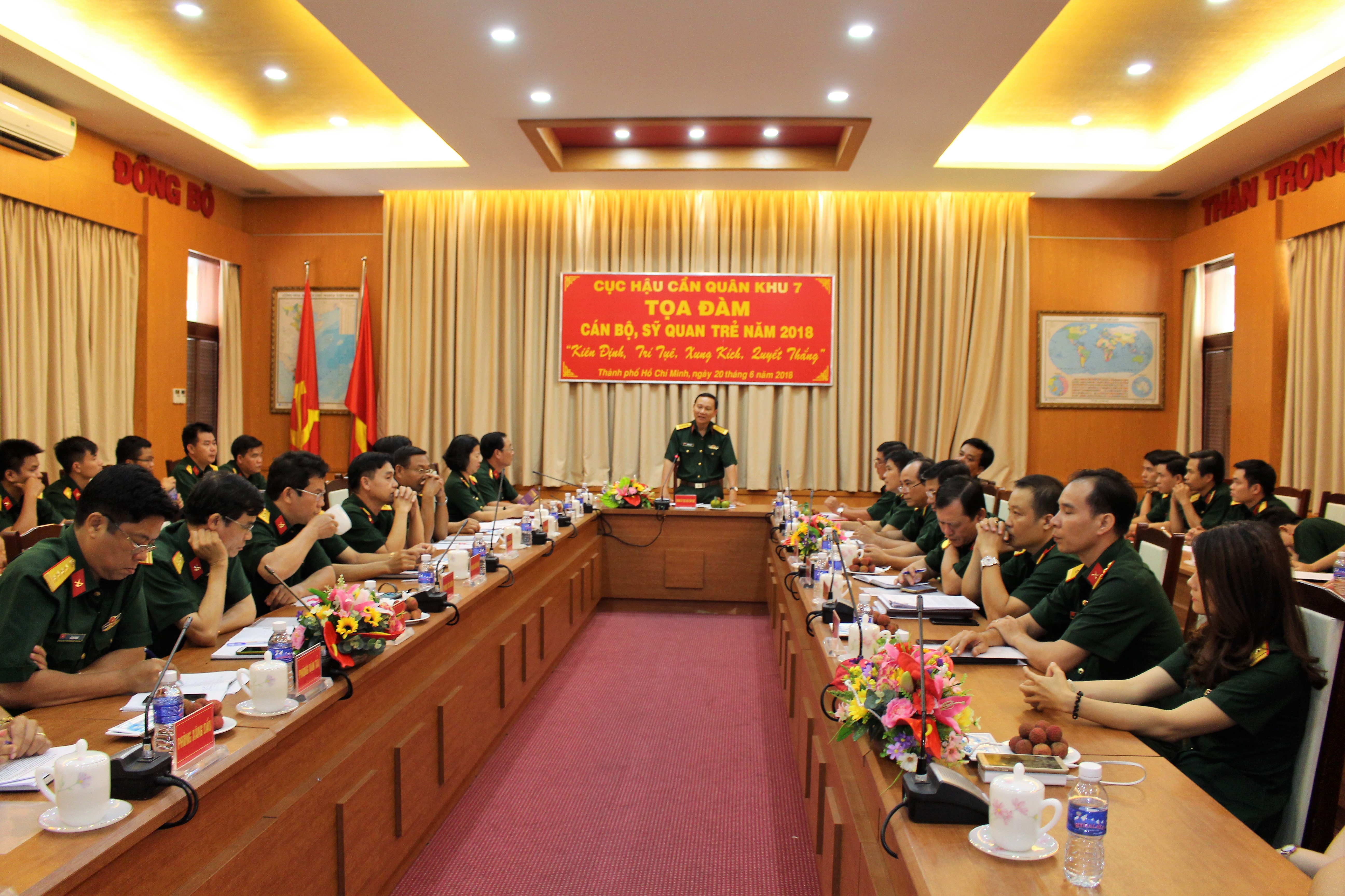 (QK7 Online) - Ngày 20 tháng 6 năm 2018, Cục Hậu cần Quân khu tổ chức tọa đàm sĩ quan trẻ năm 2018. Đại tá Huỳnh Văn Mầm, Chính ủy Cục Hậu cần chủ trì tọa đàm. Tham gia tọa đàm có 45 sĩ quan trẻ đại diện cho 132 sĩ quan trẻ trong toàn Cục.