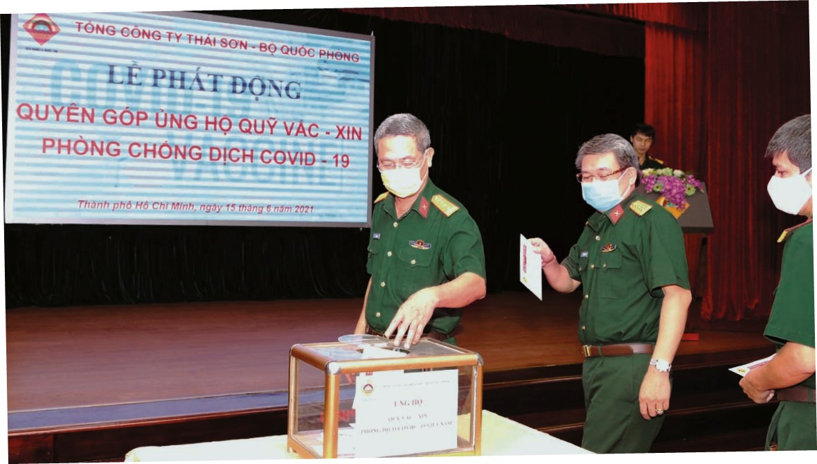 Cán bộ, nhân viên, người lao động Tổng công ty Thái Sơn quyên góp ủng hộ mỗi người một ngày lương, trích quỹ phúc lợi và vận động các đơn vị thành viên cùng hỗ trợ cán bộ, chiến sĩ, bà con vượt qua đại dịch với số tiền trên 1 tỷ đồng.