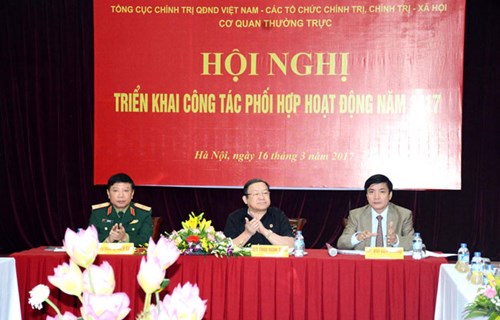 Sáng 16-3, tại Hà Nội, Tổng cục Chính trị QĐND Việt Nam và các tổ chức chính trị, chính trị-xã hội tổ chức Hội nghị triển khai công tác phối hợp hoạt động năm 2017.