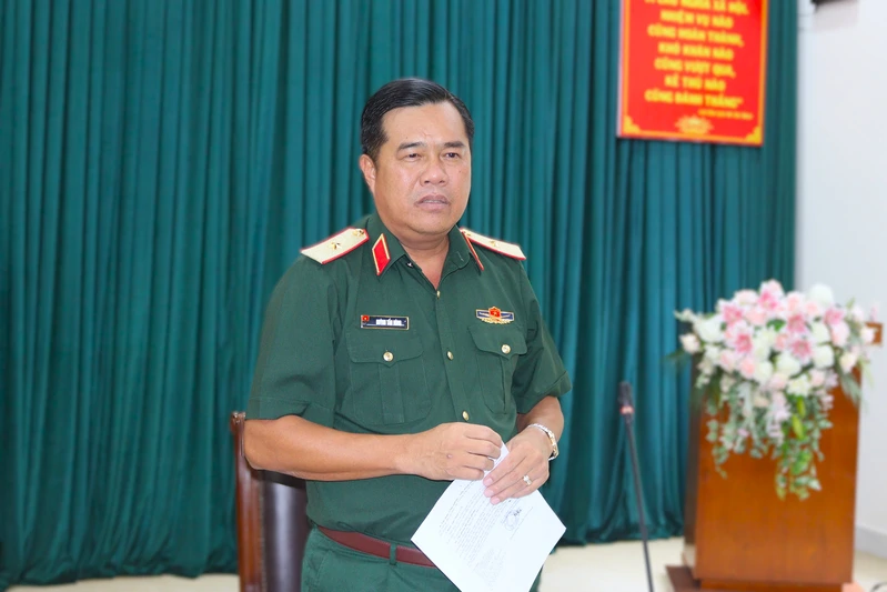 (QK7 Online) - Tại Thành phố Hồ Chí Minh, ngày 30/10, Sư đoàn 5, Quân khu 7 tổ chức Hội thảo nhân chứng lịch sử, hoàn chỉnh hồ sơ đề nghị phong tặng danh hiệu Anh hùng LLVT Nhân dân thời kỳ kháng chiến đối với Trung tướng Lê Thành Tâm, nguyên Phó Tư lệnh về Chính trị Quân khu 7, nguyên Phó Sư đoàn trưởng về Chính trị Sư đoàn 5. Đại tá Nguyễn Như Trúc, Phó Chủ nhiệm Chính trị Quân khu dự, phát biểu chỉ đạo tại Hội thảo.