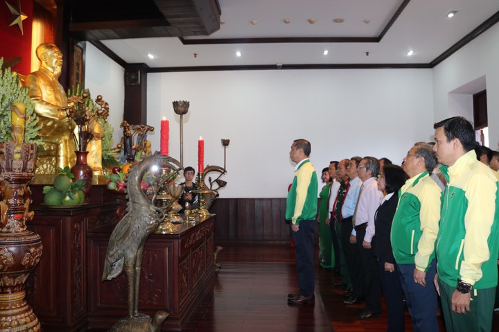 Trước khi tiến hành buổi lễ, đại diện lãnh đạo thắp hương lên bàn thờ Bác.