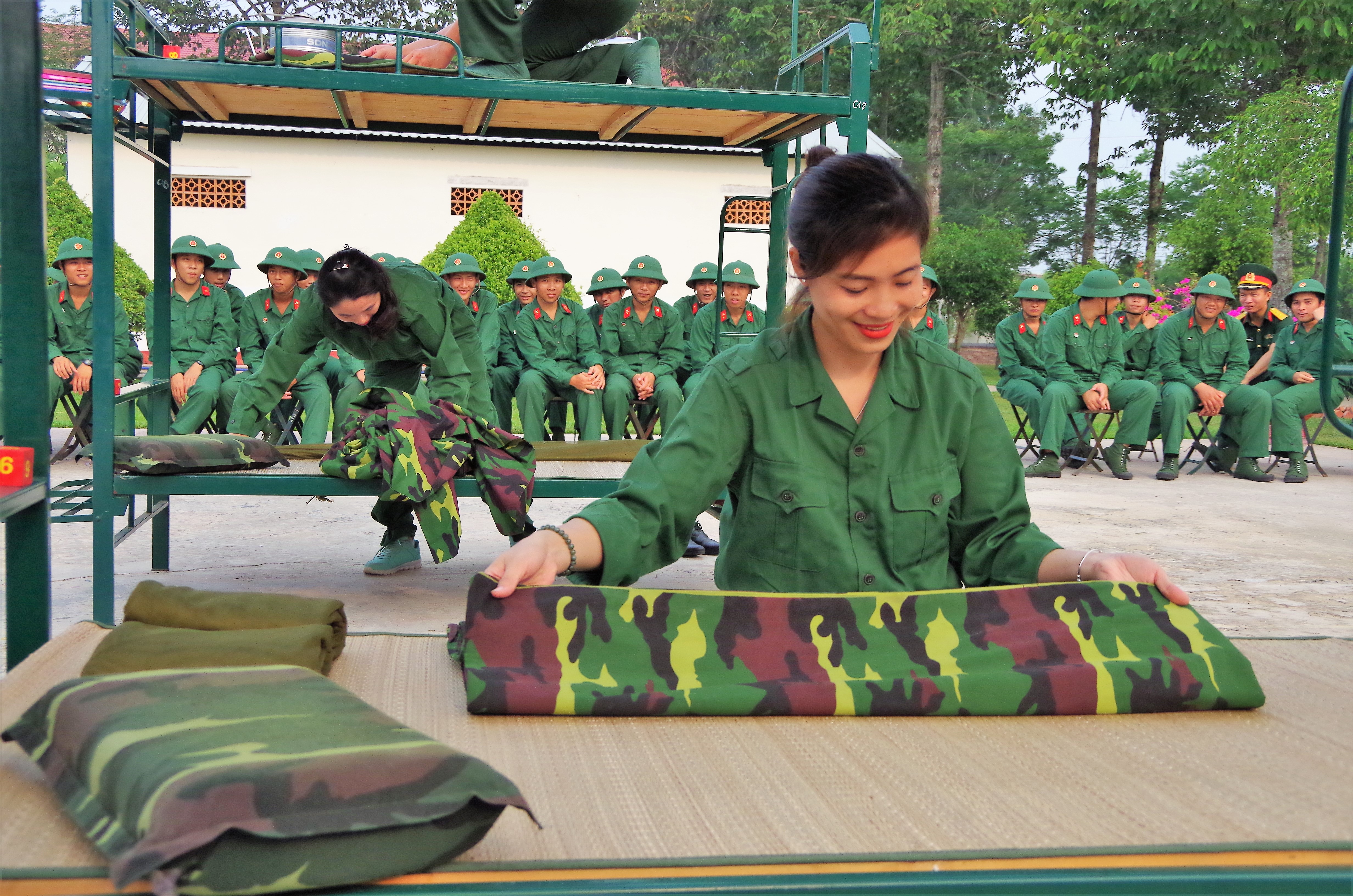 Nữ nhân viên Ngân hàng MB tham gia thi sắp xếp nội vụ cá nhân.